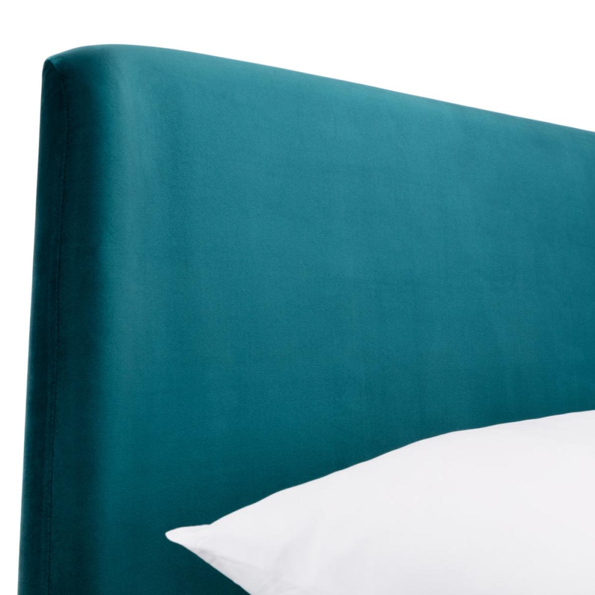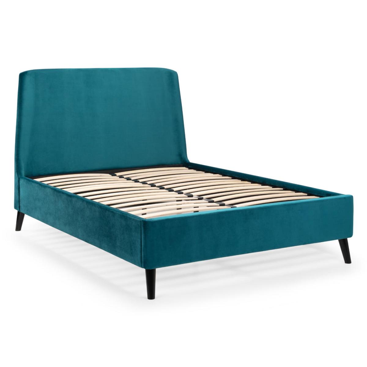 Featuring a gorgeous, curved headboard, the Frida bed exudes elegance and comfort. The black contrasting legs paired with the smooth velvet gives a modern look – and is likely to be the statement piece in any bedroom. It is also available in an ottoman version, perfect for those with smaller bedroom areas as it provides that extra storage space. Available in two beautiful shades of teal and grey. Materials: Hardwood Frame With Foam & Velvet Upholstery. Assembly Required: Yes. Care Instructions: Wipe with a clean damp cloth. Avoid household cleaners & abrasives.