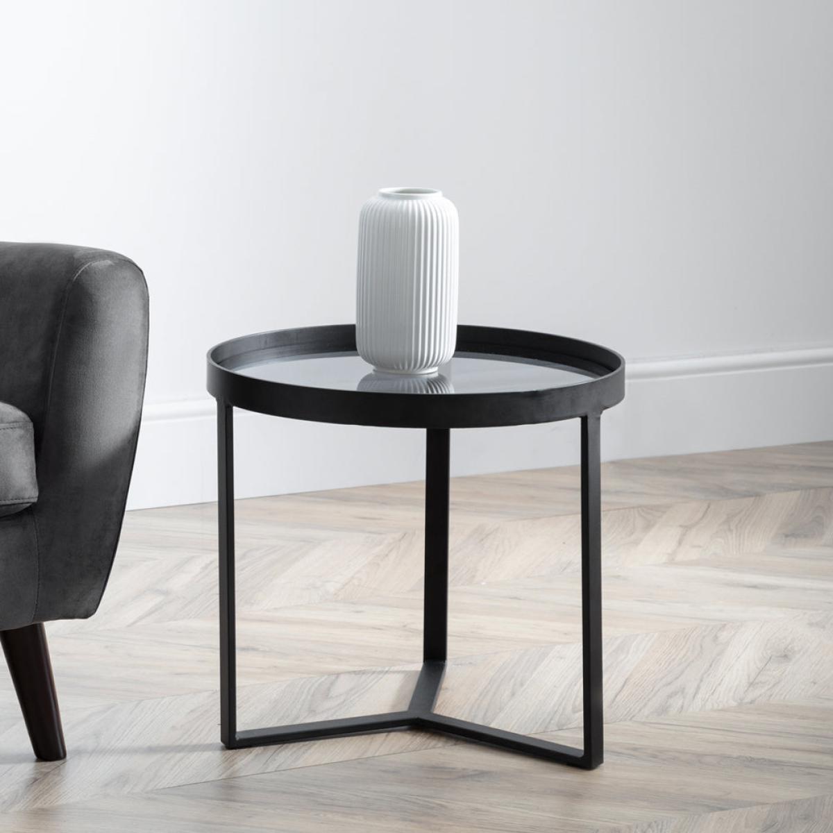 Offering a minimalistic, yet classy look the Loft occasional collection features a geometric design suitable for any modern living area. Loft comes in a choice of two finishes, choose from a smoked tempered glass top and a walnut effect top that both sit beautifully upon a black metal base. The Loft occasional collection includes a coffee table and lamp table. Materials: Glass & Black Powder Coated Steel. Assembly Required: No. Care Instructions: Wipe with a clean damp cloth. Avoid household cleaners & abrasives.