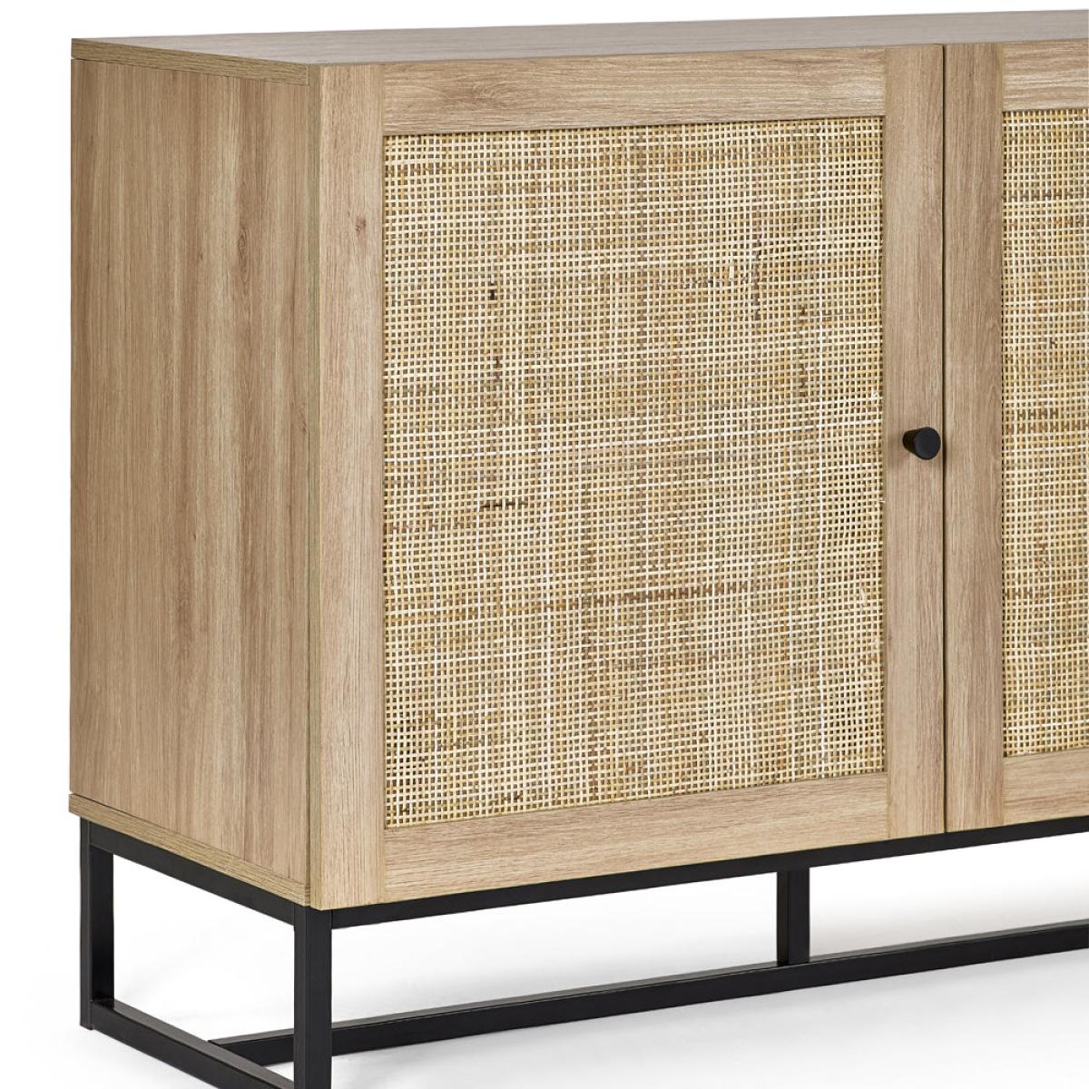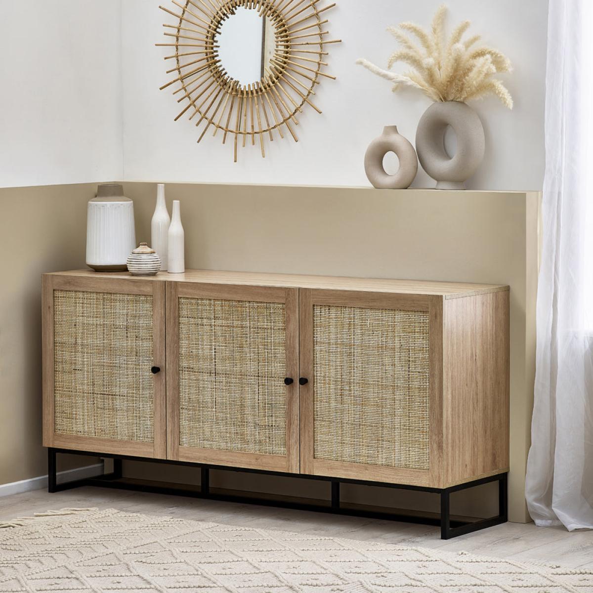 Fusing modern construction with retro design elements, the Padstow collection will exquisitely complement any styled home. The natural rattan fronts and industrial-style base collaborate perfectly to leave a warm yet chic aesthetic in your home. This range includes a bedside, 3 drawer chest, 6 drawer chest, wardrobe, coffee table, TV unit, sideboard, and tall bookcase. Also available in a black finish. Materials: Melamine With Rattan Front & Metal Base. Assembly Required: Yes. Care Instructions: Wipe with a clean damp cloth. Avoid household cleaners & abrasives.