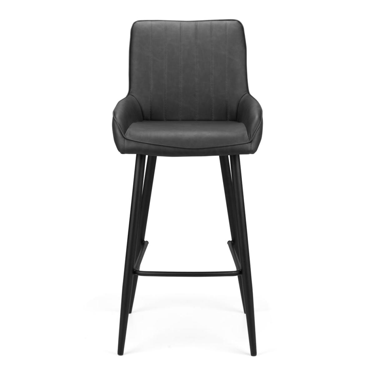 This Retro Soho Barstool is finished in an antique black faux leather with a striking black metal frame, sure to compliment any contemporary décor. The perfect addition to any dining or bar area to create an industrial, retro feel within any space. Materials: Faux Leather & Metal. Assembly Required:Yes. Care Instructions:Wipe with a clean damp cloth. Avoid household cleaners & abrasives.