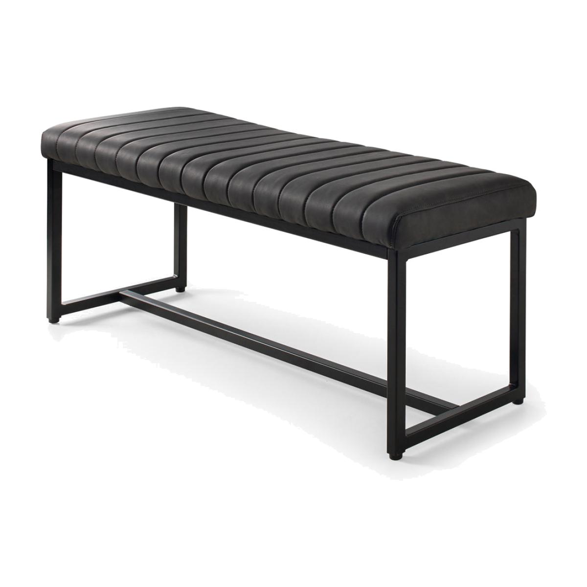 The Soho Bench adds an industrial, retro theme to any dining area. Finished in an antique black faux leather with a striking black metal frame, sure to compliment any contemporary décor. The perfect match for the Brooklyn Dining Table. Materials: Faux Leather & Metal. Assembly Required:Yes. Care Instructions:Wipe with a clean damp cloth. Avoid household cleaners & abrasives.
