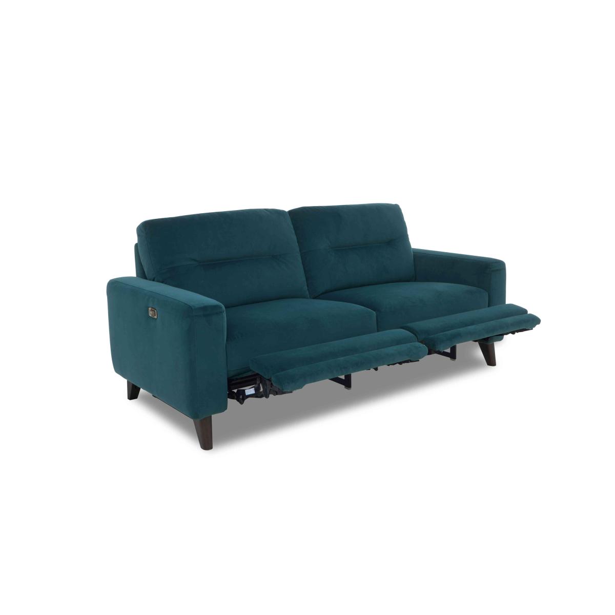 Looking for a sofa that does it all? Meet Jules, the sofa and armchair collection that delivers comfort, style and value. As well as wide arms, sprung seats and superb cushioning, these sofas and chairs also come with power elevating footrests – truly the speediest and most comfortable way to put your feet up. And we think you’ll love the look too. It’s modern yet relaxed, on-trend yet timeless and has simple decorative details and neat wooden feet. The collection is available in your choice of 100% leather or fabric with both upholstery options offering a huge range of colours, and even includes handy storage stools. The incredible-value Jules range is handcrafted exclusively for Furniture Village. This handcrafted and very stylish three-seater recliner sofa has a power-operated elevating footrest that makes relaxing just so effortless. Why you'll love it Lovely 3-seater fabric power recliner sofa makes lounging easy. Relaxed modern style at a great-value price. Kick back in comfort – this sofa has power footrests. Ease into relaxation with wide arms, sprung seats and a supportive back. There’s even a USB port for easy phone charging. In a wide choice of beautiful fabrics, some with decorative leather-style stitching. This sofa is also available in 100% leather and without the power footrest. Handcrafted exclusively for Furniture Village. This 3-seater fabric power recliner sofa is part of our Jules range. What you need to know Medium comfort level. Seat suspension: no-sag spring. Seat cushioning: foam and inner coil. Back suspension: rubber webbing. Back cushioning: fibre. Feet and back are removable. USB charging is only available with the power version of this sofa. Footrest recliner mechanism requires a clearance of 3 cm and may not work successfully over very thick carpets and rugs. Please allow time for new recliners to ease. Minor gaps are necessary to ensure ease of recliner motion and may be exaggerated depending on floor type. Some fabrics can show wear on areas of more use or in direct sunlight. Clean regularly using a soft brush or vacuum with the curtain attachment. Deal with any spills promptly. Professional cleaning advised for oil- and grease-based stains. Please read our upholstery care guide for more advice.