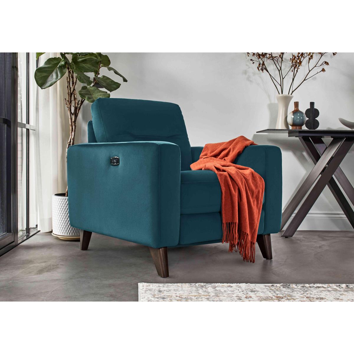 Looking for a sofa that does it all? Meet Jules, the sofa and armchair collection that delivers comfort, style and value. As well as wide arms, sprung seats and superb cushioning, these sofas and chairs also come with power elevating footrests – truly the speediest and most comfortable way to put your feet up. And we think you’ll love the look too. It’s modern yet relaxed, on-trend yet timeless and has simple decorative details and neat wooden feet. The collection is available in your choice of 100% leather or fabric with both upholstery options offering a huge range of colours, and even includes handy storage stools. The incredible-value Jules range is handcrafted exclusively for Furniture Village. Get acquainted with your new favourite armchair. Beautifully handcrafted and in a wide choice of fabrics, this one has a power elevating footrest for the ultimate in relaxation. Why you'll love it Put your feet up – no effort required – with this fabric power recliner chair. Relaxed modern style at a great-value price. Kick back in comfort – this chair has a power footrest. Ease into relaxation with wide arms, a sprung seat and a supportive back. There’s even a USB port for easy phone charging. In a wide choice of beautiful fabrics, some with decorative leather-style stitching. This chair is also available in 100% leather and without the power footrest. Handcrafted exclusively for Furniture Village. This fabric power recliner chair is part of our Jules range. What you need to know Medium comfort level. Seat suspension: no-sag spring. Seat cushioning: foam and inner coil. Back suspension: rubber webbing. Back cushioning: fibre. Feet and back are removable. USB charging is only available with the power version of this sofa. Footrest recliner mechanism requires a clearance of 3 cm and may not work successfully over very thick carpets and rugs. Please allow time for new recliners to ease. Minor gaps are necessary to ensure ease of recliner motion and may be exaggerated depending on floor type. Some fabrics can show wear on areas of more use or in direct sunlight. Clean regularly using a soft brush or vacuum with the curtain attachment. Deal with any spills promptly. Professional cleaning advised for oil- and grease-based stains. Please read our upholstery care guide for more advice.