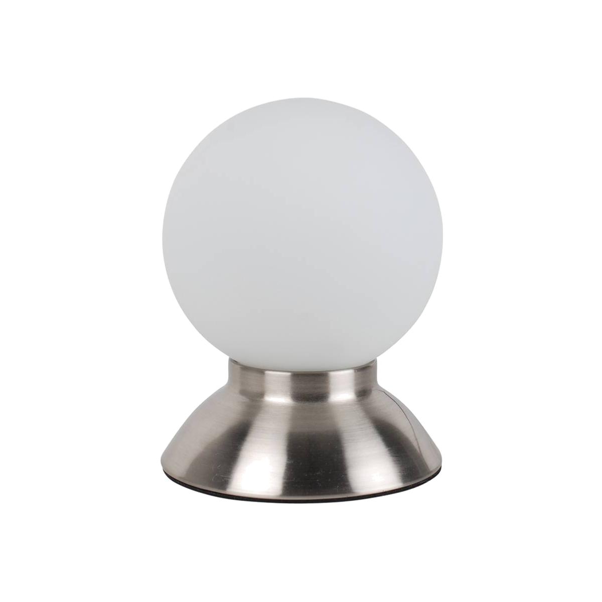 Julia Touch Table Lamp Satin Chrome. The Julia Touch Table Lamp is a simple but beautiful little piece exclusive to Pagazzi. The opal glass shade is complemented by the satin chrome finished spherical base which it sits upon. The simplicity of this contemporary design ensures adaptability in your home.