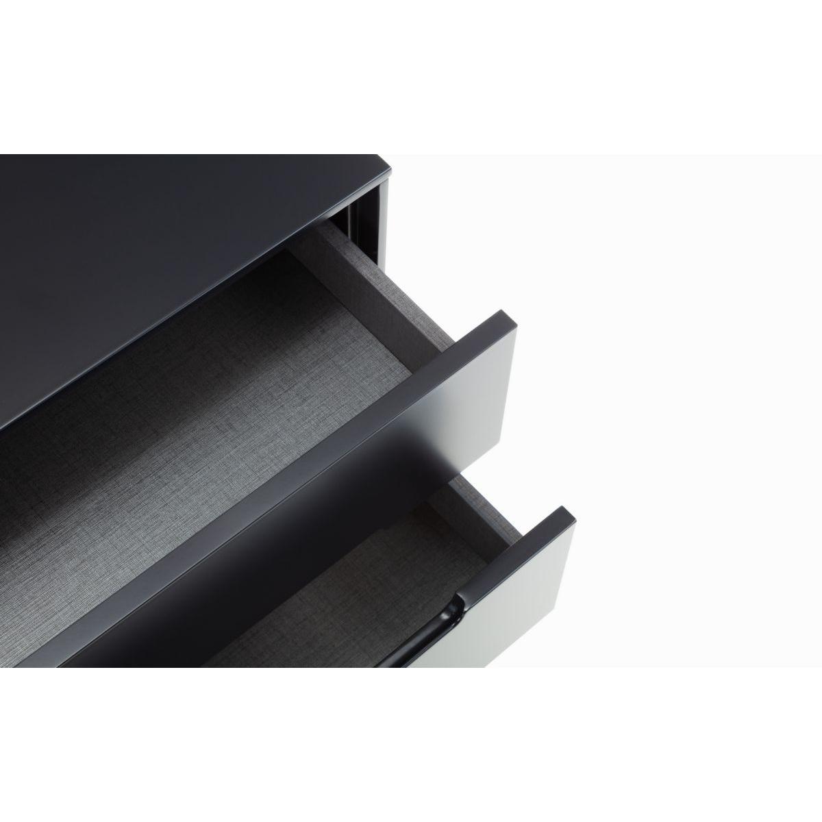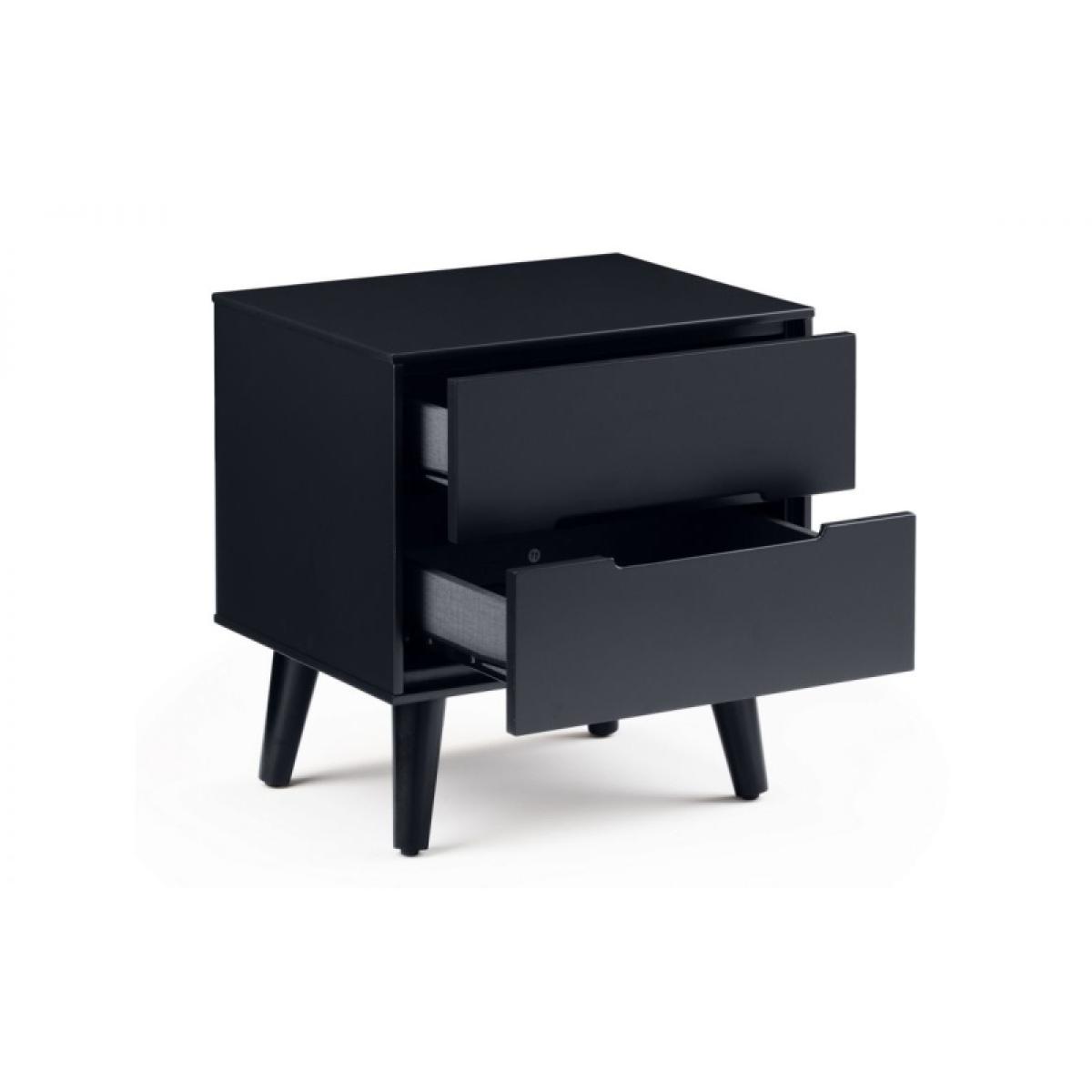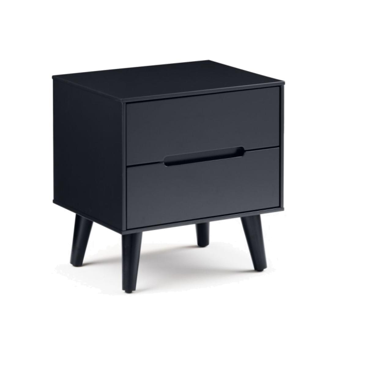 The Julian Bowen Alicia 2 Drawer Bedside in Anthracite effortlessly blends modern elegance with practicality. Finished in a rich anthracite tone, this sleek bedside table offers a stylish storage solution for your bedroom. Featuring two spacious drawers, it provides the perfect place to store essentials such as books, accessories, or night-time necessities, helping to keep your space neat and organized. The smooth, easy-glide drawers ensure effortless use, while the clean lines and minimalist design add a contemporary touch to any room. Crafted from high-quality materials, this bedside table is both durable and chic, making it the ideal complement to any modern or industrial-inspired interior. The Julian Bowen Alicia 2 Drawer Bedside is a perfect combination of form, function, and style for your bedroom. Assembly required. Features: Immaculate matt anthracite lacquered finish Tapered black finish legs Two drawers Part of Julian Bowen's Alicia anthracite bedroom range Dimensions: Height: 47cm Width: 45cm Depth: 35cm Internal drawer dimensions: 36cm x 29cm x 5.5cm All screens vary in colour reproduction and whilst every effort has been made to display the colour as accurately as possible it is for guidance only.