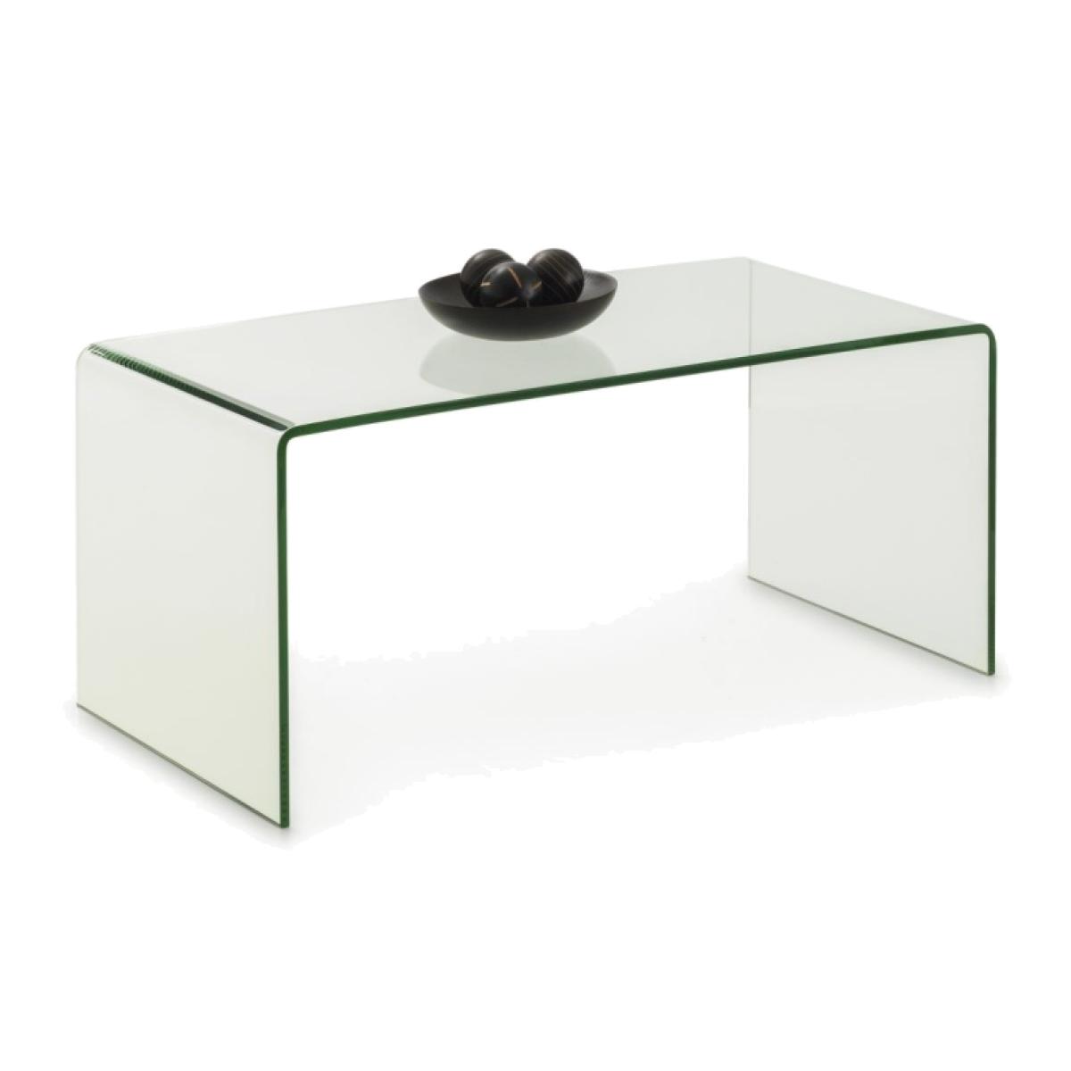 This Amalfi bent glass coffee table is beautifully crafted from a single sheet of tempered glass, bent and moulded into a curvacious design with no joins or fixings. From a collection of three pieces, the Julian Bowen Amalfi clear glass range will create the feeling of more space in your home, whilst adding a touch of elegance.  12mm Tempered Clear Glass Glass complies with BS EN 12150:2000 Clause 8 - Fragmentation Constructed from a single piece of tempered glass Part of Julian Bowen's Amalfi glass collection Dimensions Height: 43cm Width: 100cm Depth: 50cm