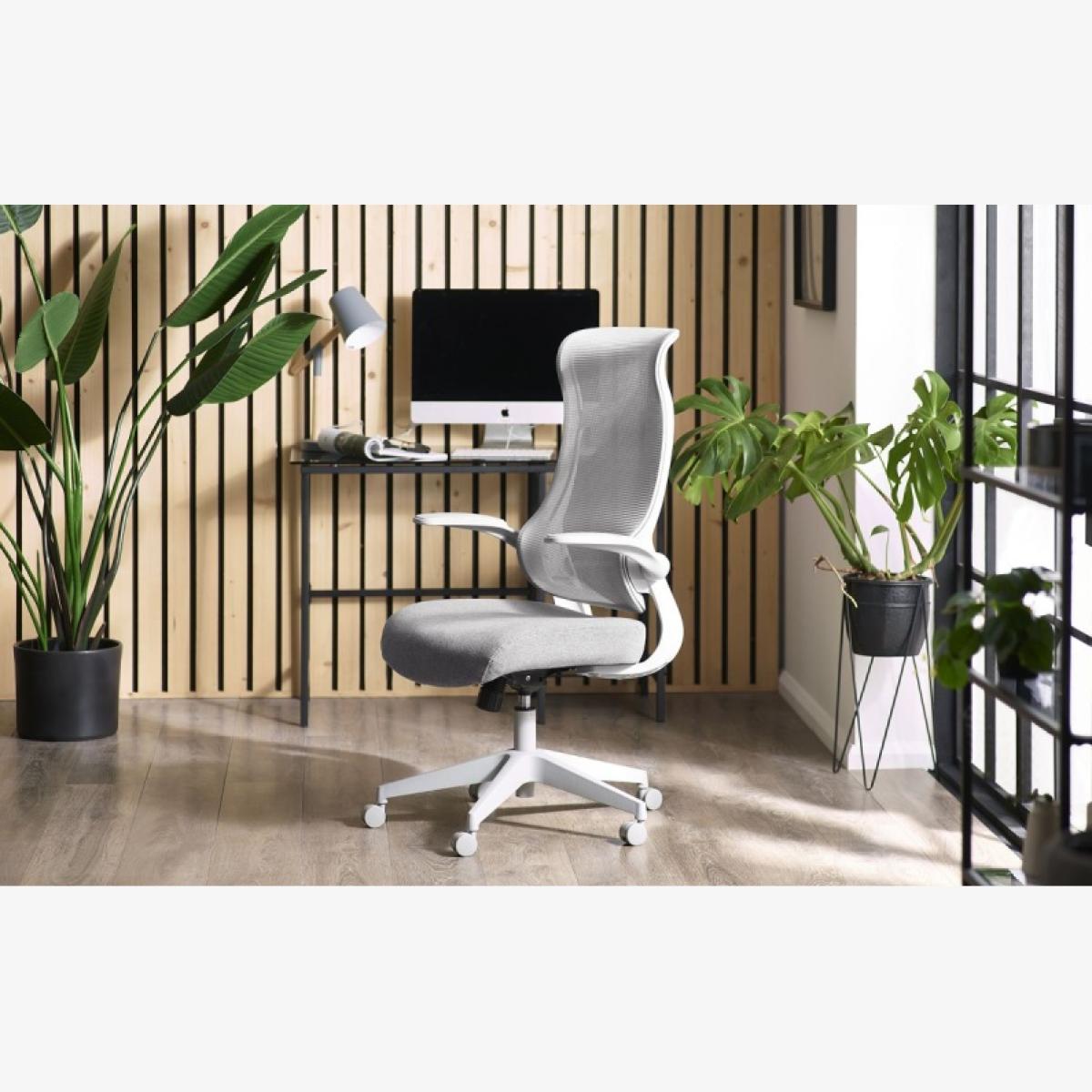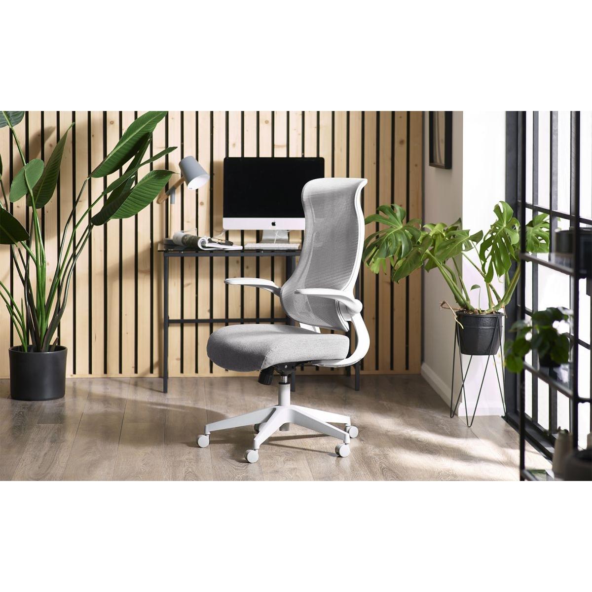 Effortlessly enhance your office setting with the Archer Office Chair, a sleek and modern addition that seamlessly integrates into any workspace. Boasting a slightly curved grey mesh back, this chair ensures optimal support and breathability, enhancing comfort during extended work hours. Its ergonomic design, complete with an adjustable height and tilt mechanism, promotes proper posture and reduces fatigue. The grey starbase structure, equipped with five smooth coasters, offers stability and easy mobility. A soft-touch upholstered seat with a sloping front alleviates pressure on the back of the legs, creating a perfect balance for a comfortable and productive office environment. A sleek and modern addition that fits in any workspace. Offers optimal support and breathability, with a curved grey mesh back for comfort. Promotes proper posture and reduces fatigue with ergonomic design, including adjustable height and tilt mechanism. Ensures stability and easy mobility with a grey starbase structure and five smooth coasters. Enhances comfort and productivity with a flip-up armrest and a soft-touch upholstered seat featuring a sloping front to alleviate leg pressure. Dimensions Height: 118cm Width: 67cm Depth: 63.5cm All screens vary in colour reproduction and whilst every effort has been made to display the colour as accurately as possible it is for guidance only.