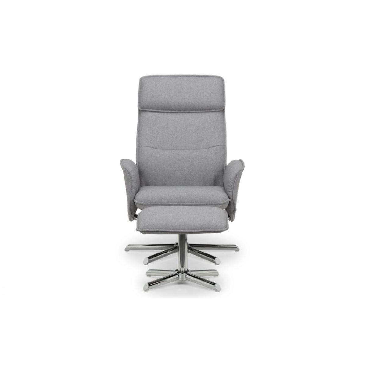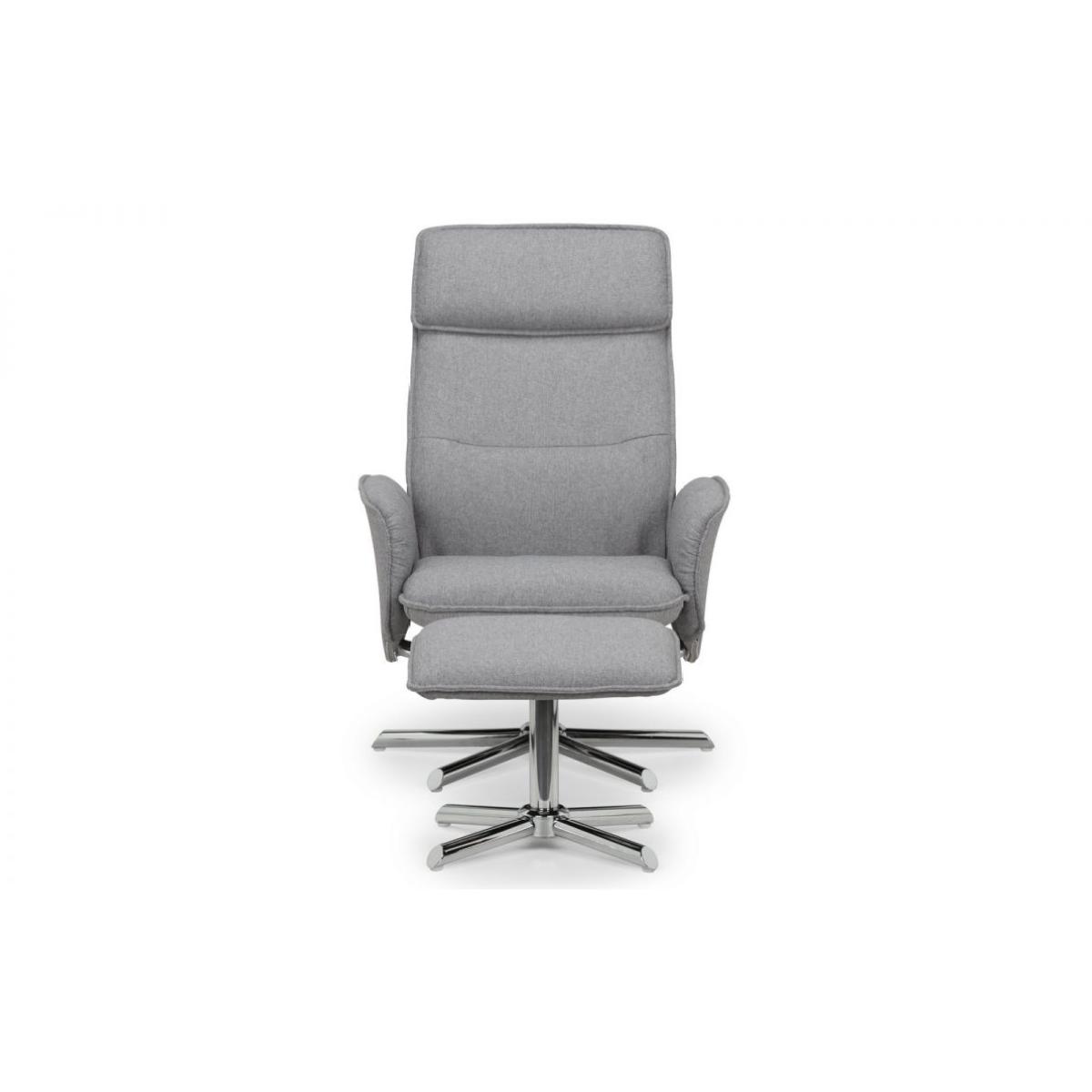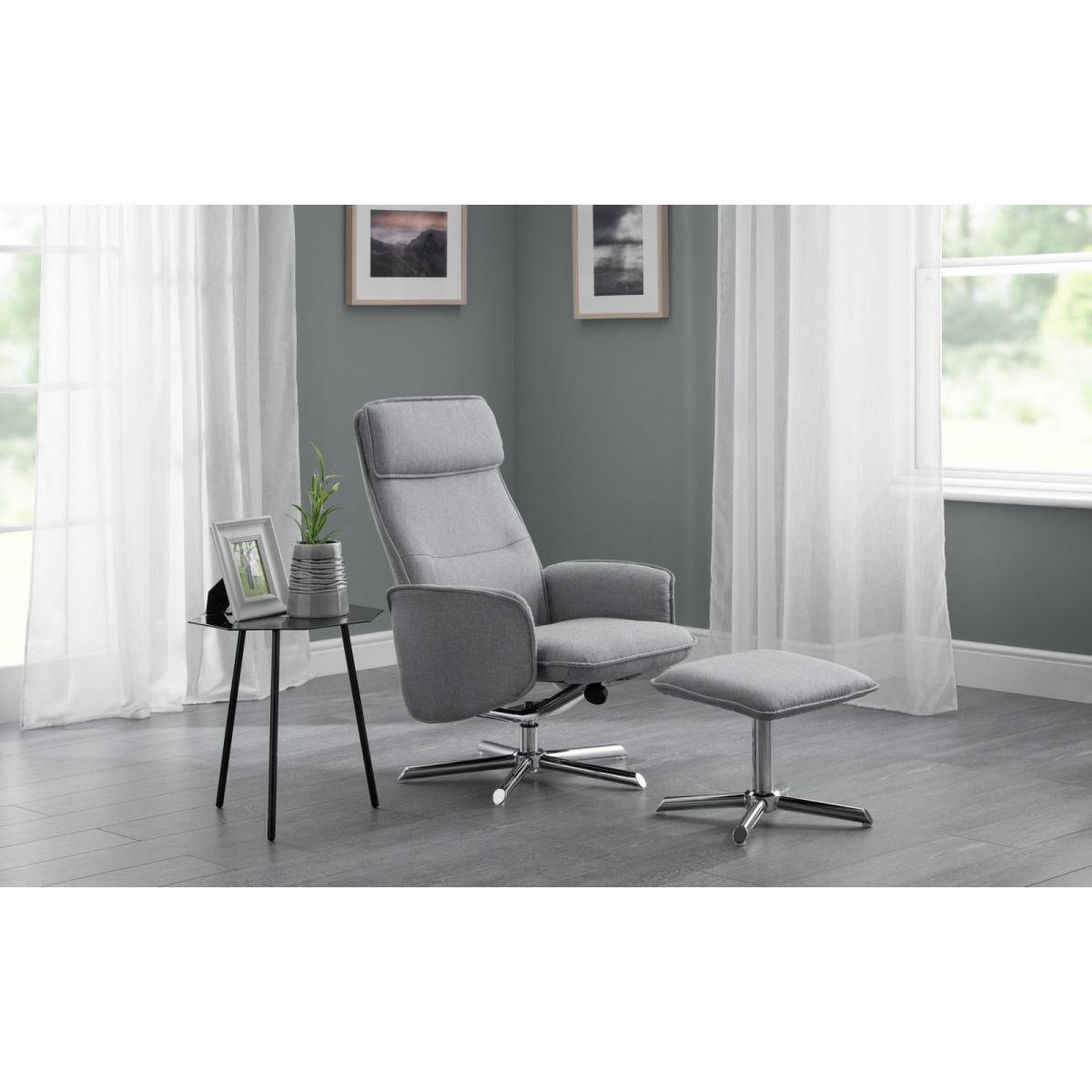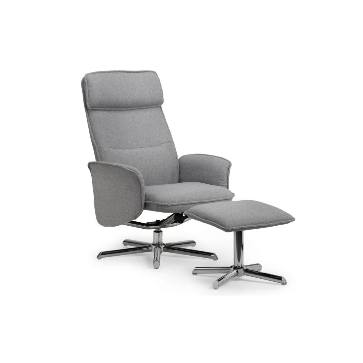 Julian Bowen Aria Recliner and Stool With Chrome Base - Grey Linen