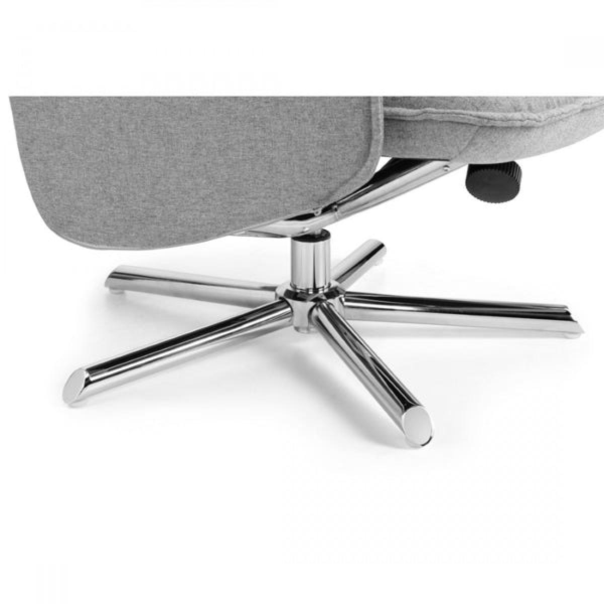 The Aria Recliner is beautifully upholstered in grey linen fabric with a stunning chrome base. Featuring a padded headrest and footstool to provide utmost comfort, this modern chair is suitable for a wide range of decor. Not only does this chair recline, it also swivels allowing you to reach your preferred position at ease.
