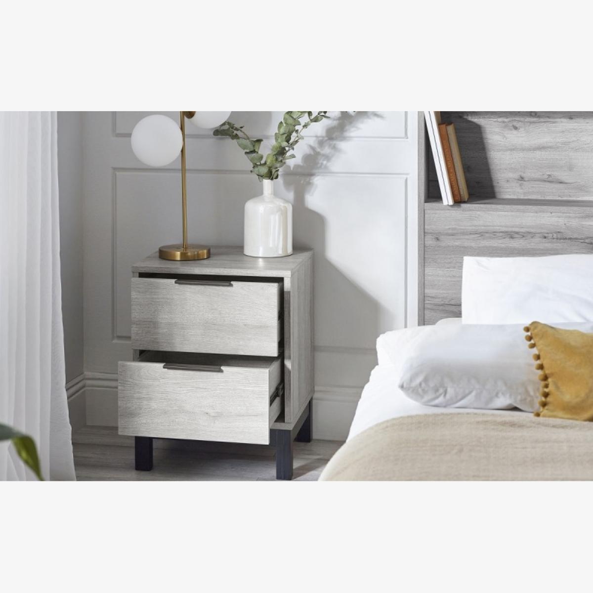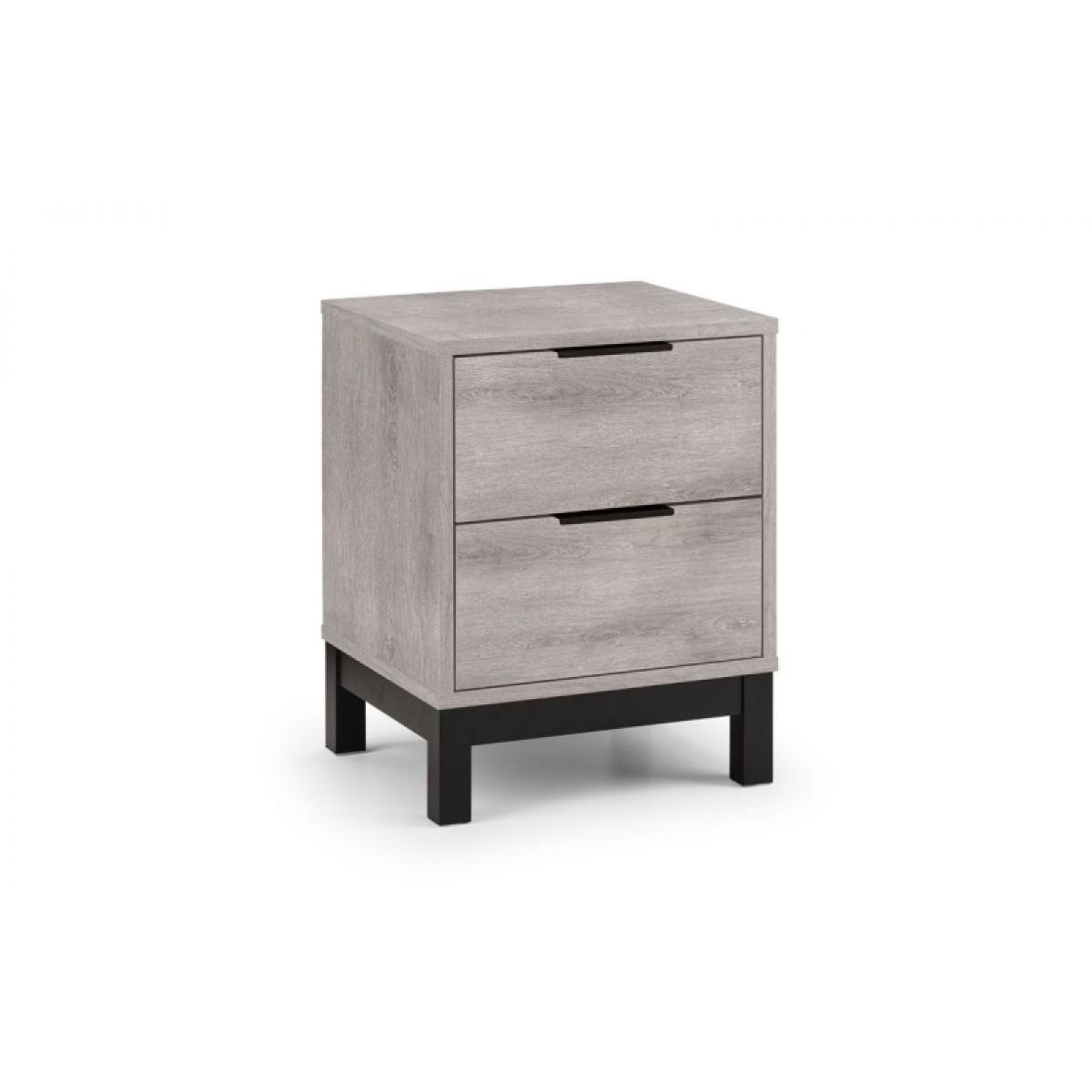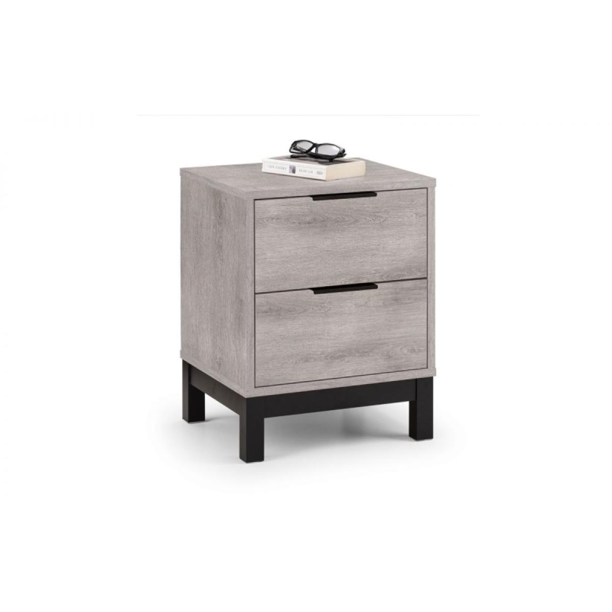 The Julian Bowen Bali 2 Drawer Bedside in Grey Oak is the perfect blend of modern style and practical storage. Featuring a sophisticated grey oak finish, this bedside table adds a touch of contemporary elegance to your bedroom while providing functional storage solutions. With two spacious drawers, it offers plenty of space to keep your nighttime essentials neatly organized, whether it's books, glasses, or other small items. The open shelf beneath the drawers adds even more storage options for things like decor or easy-to-reach accessories. Crafted from high-quality materials, the bedside chest is designed for durability and built to last. Its clean lines and minimalist design ensure it complements a variety of bedroom styles, making it a versatile and stylish addition to your space. Whether you're looking for extra storage or simply enhancing your bedroom’s aesthetic, in Grey Oak is a perfect choice. Features: Radiates rustic allure with its stunning grey oak finish, seamlessly complementing a range of interior styles. High quality style. Home assembly required. Modern grey oak finish with contrasting black legs and handles. Part of the Julian Bowen Bali collection. 12 month product guarantee. Dimensions: Height 58cm Width 45cm Depth 40cm All screens vary in colour reproduction and whilst every effort has been made to display the colour as accurately as possible it is for guidance only.