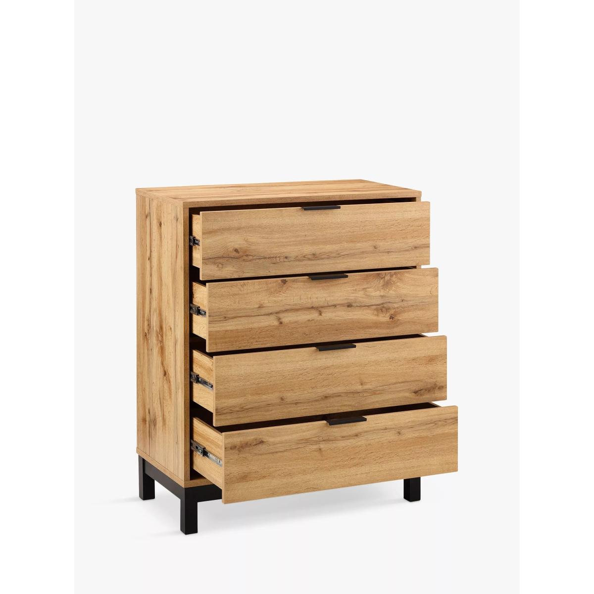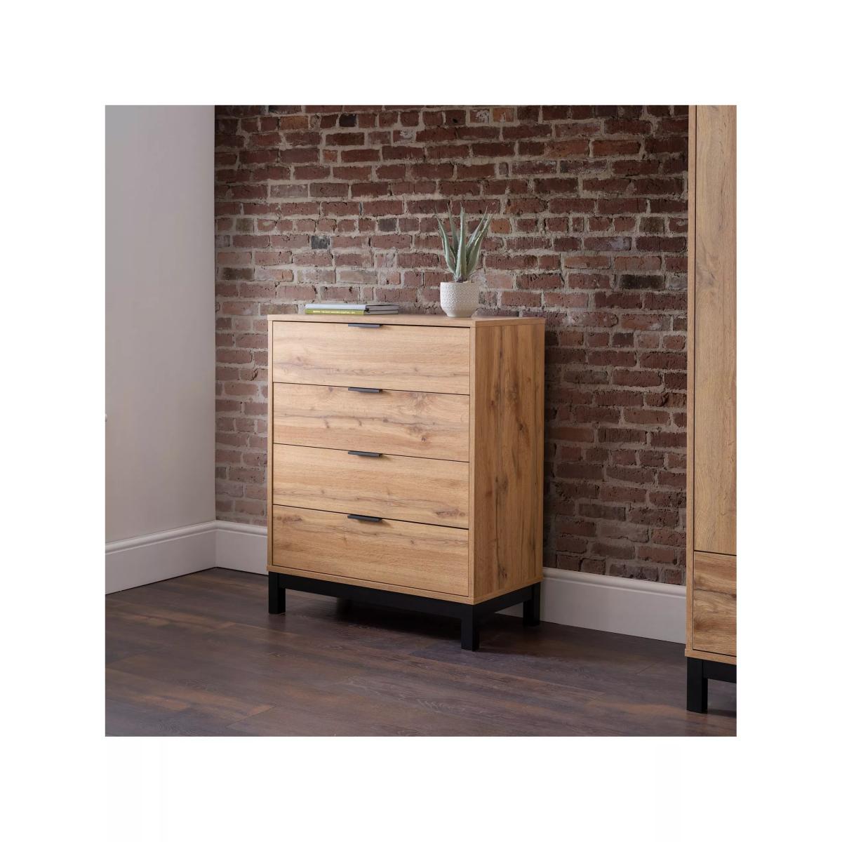 Using revolutionary click furniture technology, the Bali collection combines high quality style with simple assembly. With a modern oak finish and contrasting black legs and handles, the Bali collection creates a classic industrial look, giving you a high-quality interior with a low maintenance upkeep. The Bali chest of drawers provides generous storage space, with four spacious drawers in total. Want to see it first? You may want to see and get a feel for the furniture in one of our shops before ordering. We'll be able to tell you where the range you'd like to view is on display.