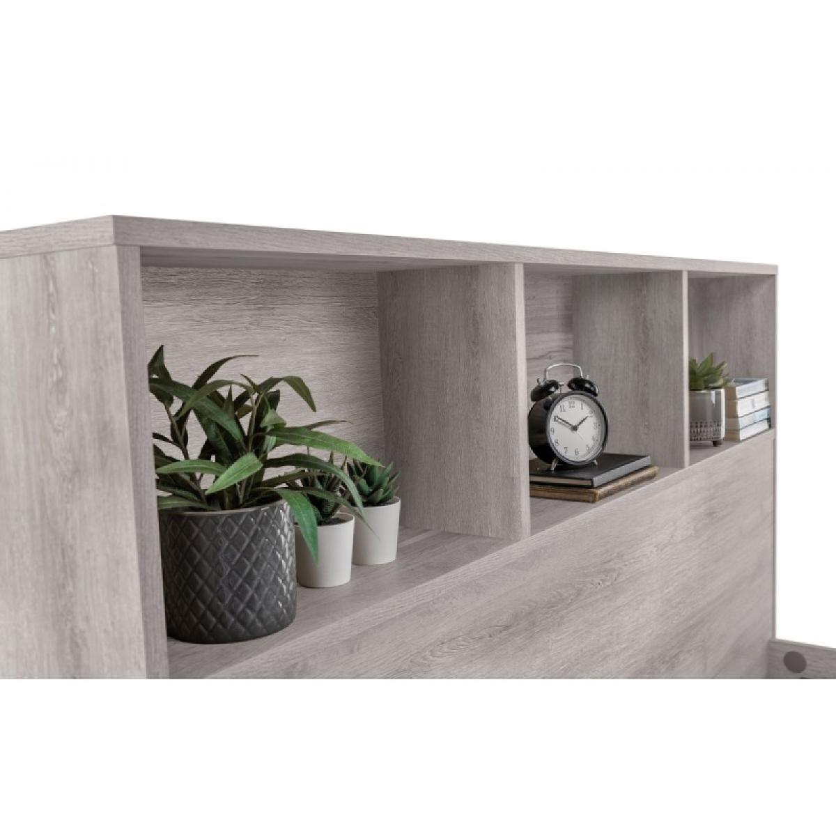 Transform your bedroom with theJulian Bowen Bali Bedframe with Bookcase Headboard - Grey Oak, a sophisticated and practical addition to any bedroom. This innovative design features an integrated headboard with a built-in bookcase, offering a sleek and convenient solution for storing your favorite books and bedtime essentials. The stylish design ensures that everything you need is within easy reach while enhancing the elegance of your space. Crafted with Click Furniture Technology, this bed offers effortless assembly and disassembly. Perfect for those who appreciate both style and functionality. Mattress sold separately. Features: Radiates rustic allure with its stunning grey oak finish, seamlessly complementing a range of interior styles. High quality style. Home assembly required. Modern grey oak finish with contrasting black legs and handles. Part of the Julian Bowen Bali collection. 12 month product guarantee. Dimensions: Single: Height 105cm Width 101cm Depth 213cm Double: Height 105cm Width 148cm Depth 213cm King: Height 105cm Width 165cm Depth 213cm All screens vary in colour reproduction and whilst every effort has been made to display the colour as accurately as possible it is for guidance only.