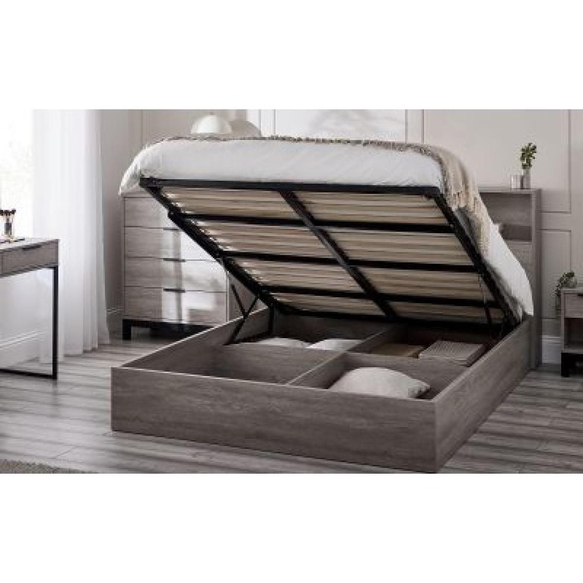 Enhance your bedroom with the Julian Bowen Bali Ottoman Storage Bedframe - Grey Oak, a perfect blend of sophistication and practicality. This innovative bed offers a spacious under-bed storage solution, ideal for keeping your bedding, clothing, or other essentials neatly tucked away. The sleek design, combined with a contemporary grey oak finish, brings a touch of elegance to your space while maximising functionality. Crafted with Click Furniture Technology, it ensures effortless assembly and disassembly, making it ideal for those who value both style and convenience. Mattress sold separately. Features: Radiates rustic allure with its stunning grey oak finish, seamlessly complementing a range of interior styles Features a convenient built-in bookcase headboard for storing your cherished book collections Utilises a gas-powered lift-up system for effortless access to underneath storage, ensuring convenience in your daily routine. Offers ample storage space for clothing, extra bedding, and towels, for a tidy and organised space Incorporates Click Furniture Technology, for a hassle-free assembly and straightforward setup experience Home assembly required. Dimensions: Single: Height 105cm Width 101cm Depth 214cm Double: Height 105cm Width 148cm Depth 214cm King: Height 105cm Width 165cm Depth 214cm All screens vary in colour reproduction and whilst every effort has been made to display the colour as accurately as possible it is for guidance only.