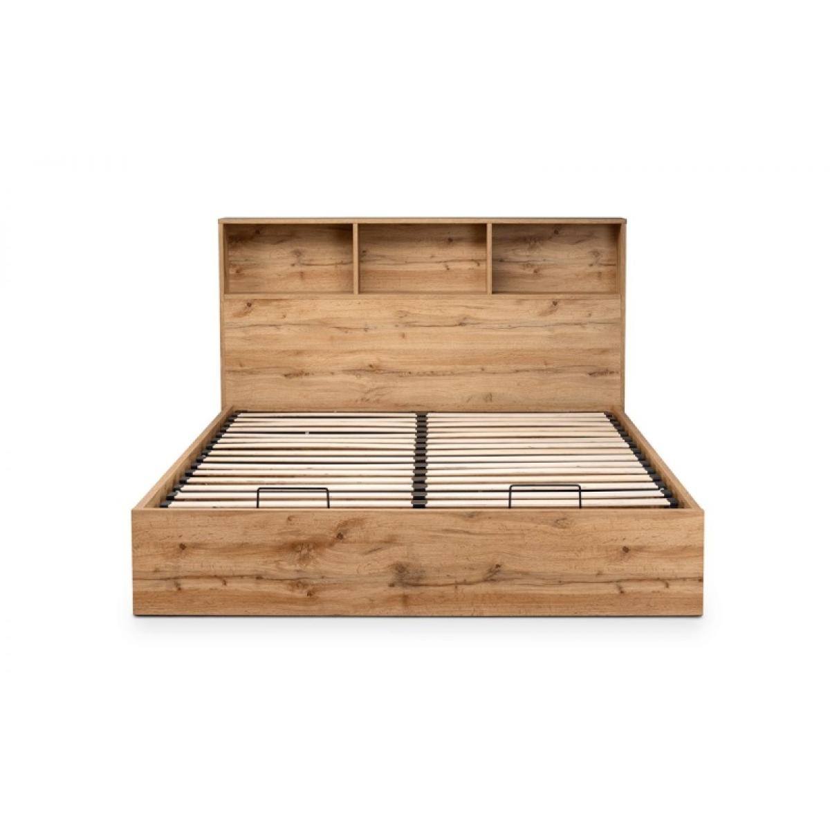 Crafted with the warmth of natural oak, theJulian Bowen Bali Ottoman Storage Bedframe - Light Oak radiates rustic charm, complementing diverse interior styles. The ottoman design optimises bedroom space for storage without sacrificing style. What sets this bed apart is the integrated headboard with a built-in bookcase, creating a convenient space for your favorite reads and enhancing the functionality of your sleeping sanctuary. Utilising innovative Click Furniture Technology, this bed ensures easy assembly for a hassle-free setup. Features: Radiates rustic allure with its stunning light oak finish, seamlessly complementing a range of interior styles Features a convenient built-in bookcase headboard for storing your cherished book collections Utilises a gas-powered lift-up system for effortless access to underneath storage, ensuring convenience in your daily routine. Offers ample storage space for clothing, extra bedding, and towels, for a tidy and organised space Incorporates Click Furniture Technology, for a hassle-free assembly and straightforward setup experience. Home assembly required. Dimensions: Single: Height 105cm Width 101cm Depth 214cm Double: Height 105cm Width 148cm Depth 214cm King: Height 105cm Width 165cm Depth 214cm All screens vary in colour reproduction and whilst every effort has been made to display the colour as accurately as possible it is for guidance only.