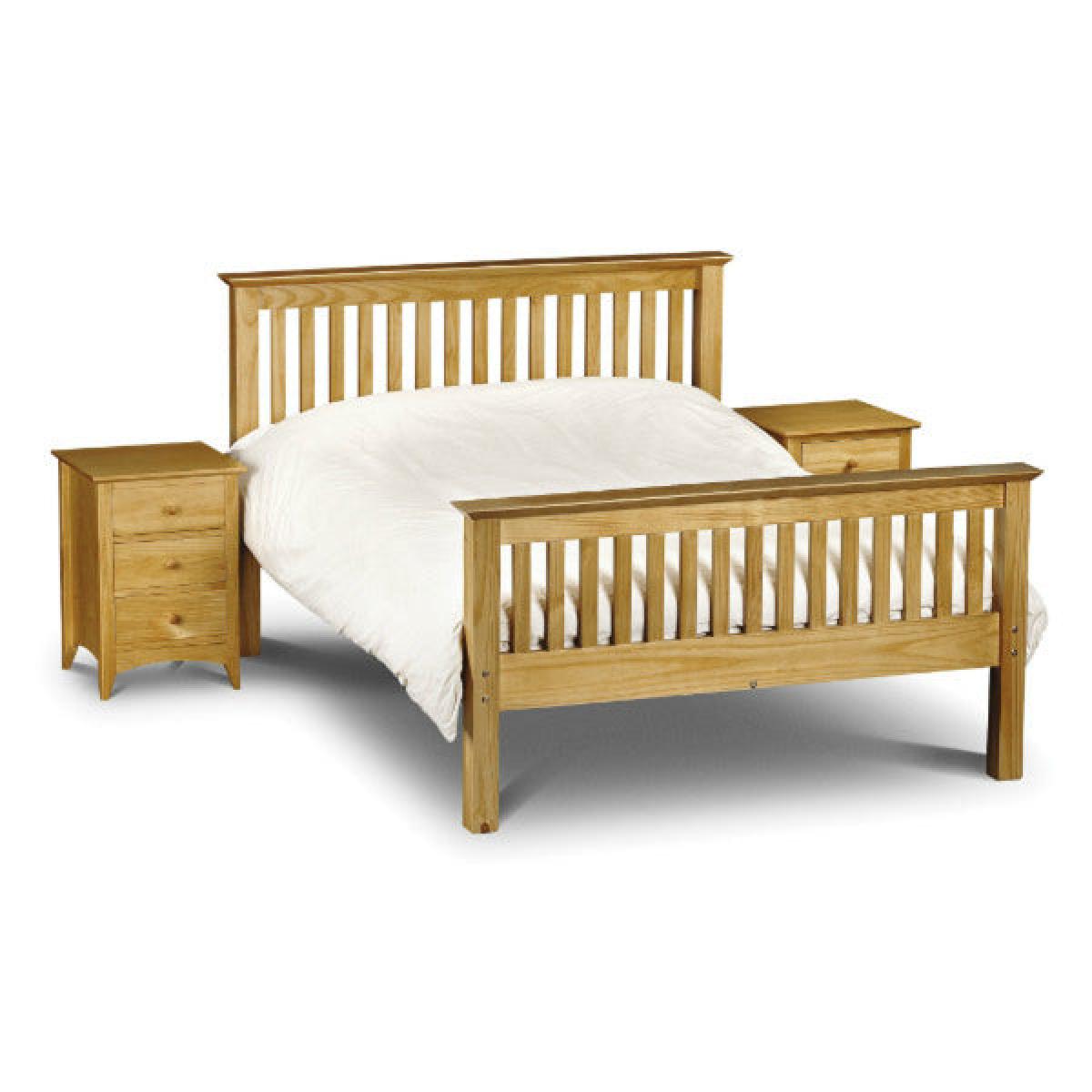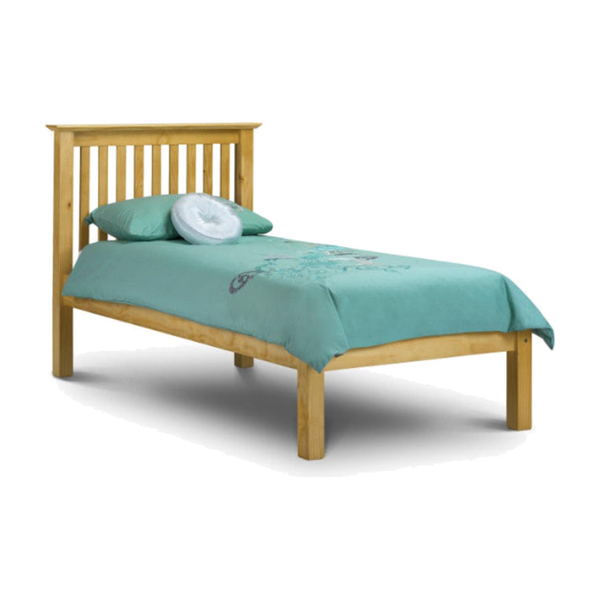 An imposing bed frame made from solid pine in a timeless shaker style that fits equally well alongside contemporary and traditional interiors. Substantial posts and capping combine with a solid pine slatted base to ensure an incredibly robust and durable bed frame. H:110 x W: 157 x D: 209 x Head H: 110 x Foot H: 48. 5 cm. H:110 x W: 168 x D: 218 x Head H: 110 x Foot H: 48. 5 cm. H:110 x W: 107 x D: 209 x Head H: 110 x Foot H: 48CM cm.