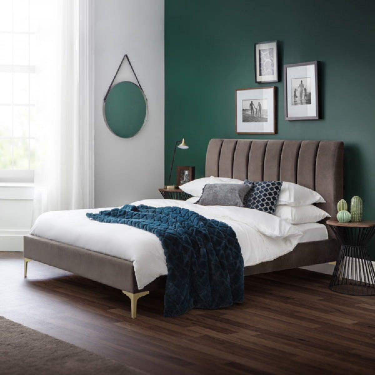 Julian Bowen Bed Deco Scalloped Velvet / Truffle Velvet/Brushed Gold / King