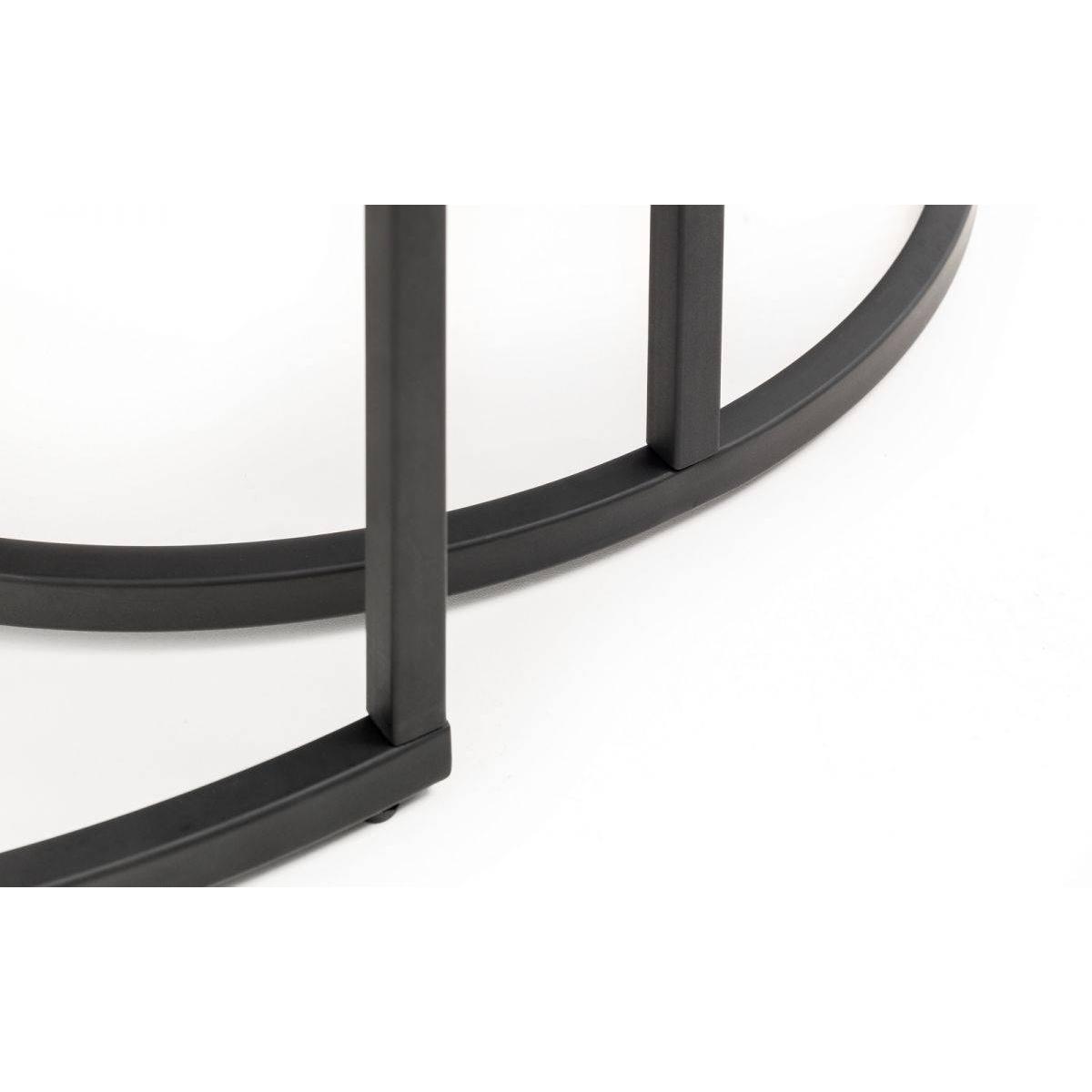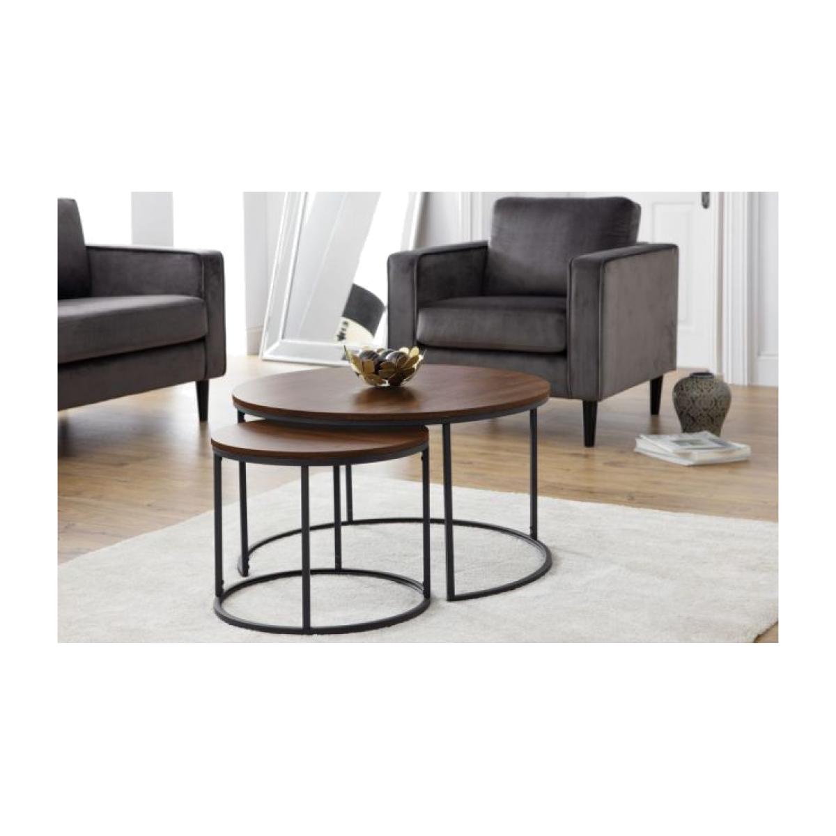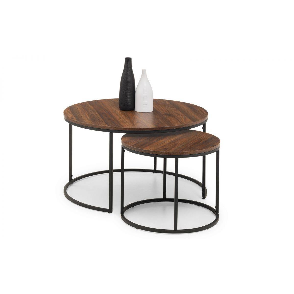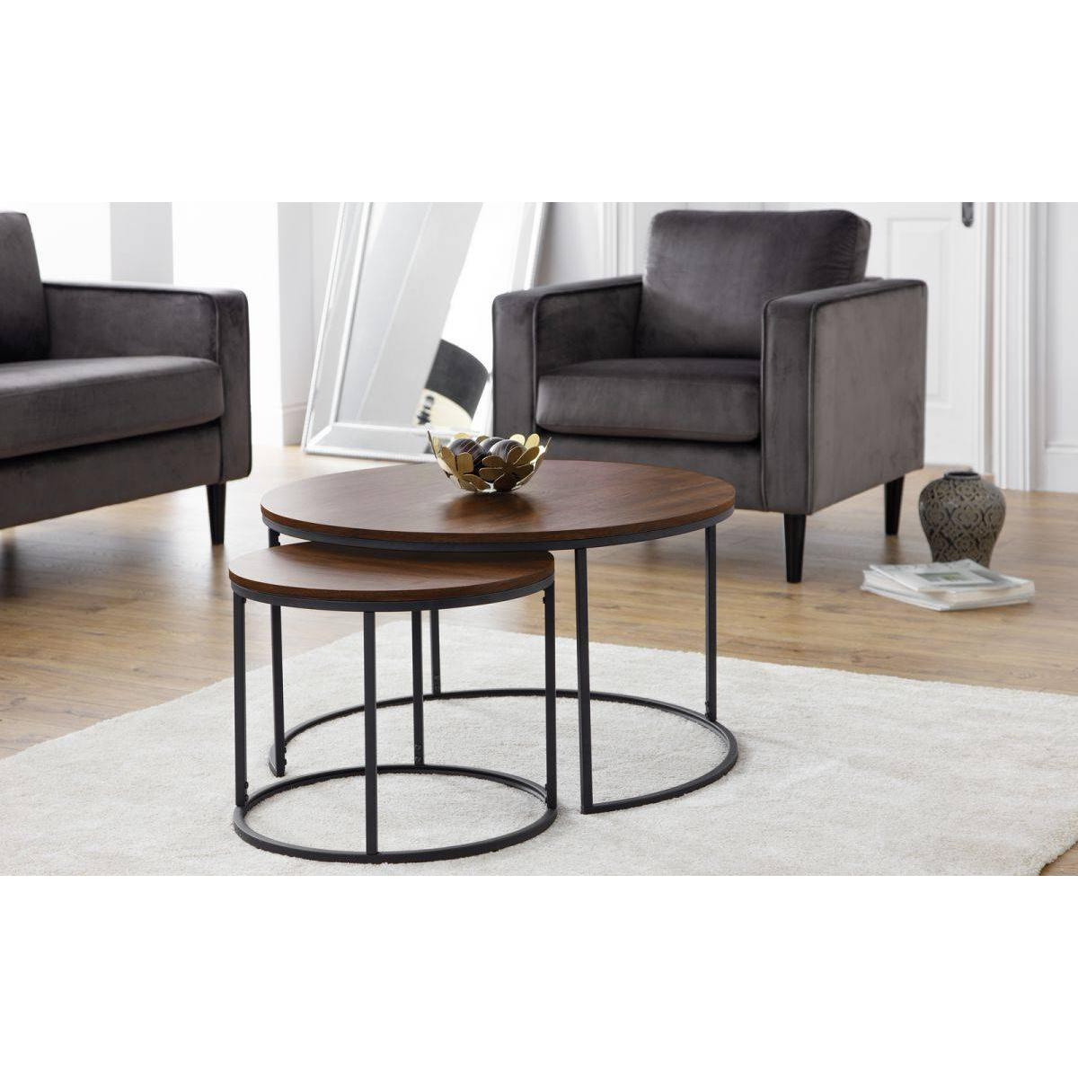 The Bellini Round Nesting Coffee Table ensures long lasting durability, crafted from black coated metal and MDF in a walnut foil finish. This set of two coffee tables boast a contemporary, stylish design with an industrial feel. Ensuring a space saving solution, the coffee tables slot together as and when they are in use. Black coated metal frame and walnut foil. Strong and durable construction. Dimensions: 80cm (D) x 80cm (W) x 50cm (H)Assembly required.