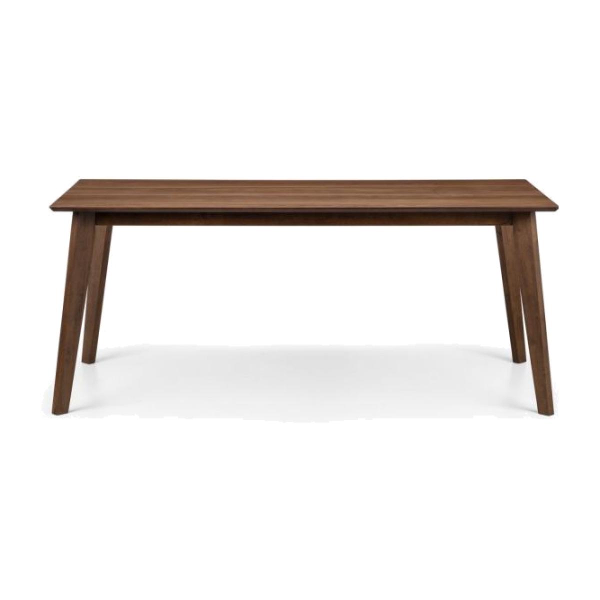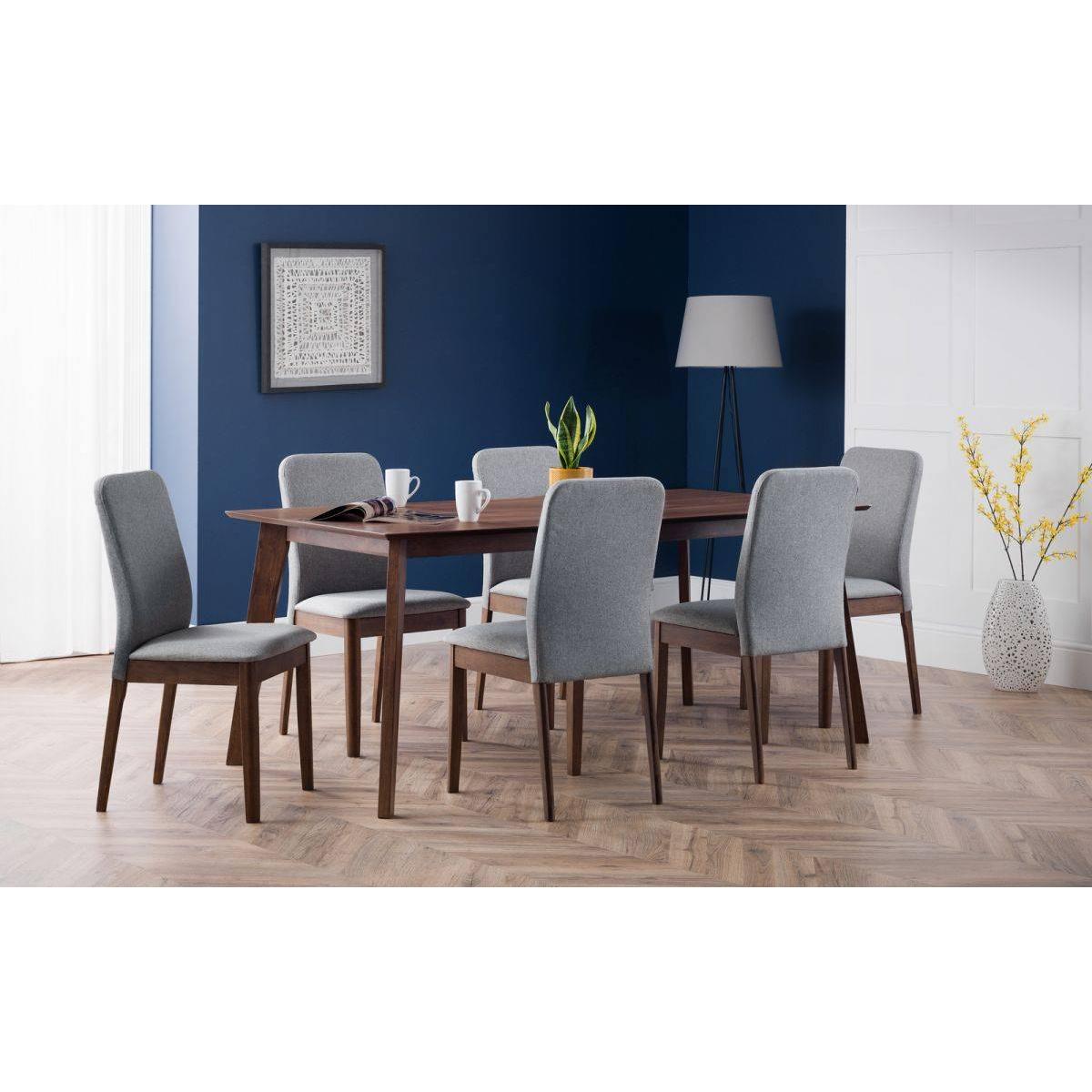 I love this table for its clean, modern lines and warm walnut finish, making it versatile enough to suit a variety of interiors. It works particularly well in contemporary, Scandinavian, or mid-century modern spaces, bringing a natural, inviting touch to dining rooms. Practical styling tips include pairing it with minimalist chairs for a sleek look or adding soft textiles and statement lighting to soften the overall aesthetic. When styling, consider placing a simple runner or a centrepiece to avoid clutter and keep the table functional yet stylish. Its neutral tone allows it to be easily incorporated into both bold and subtle colour palettes, making it a flexible choice for many homes.