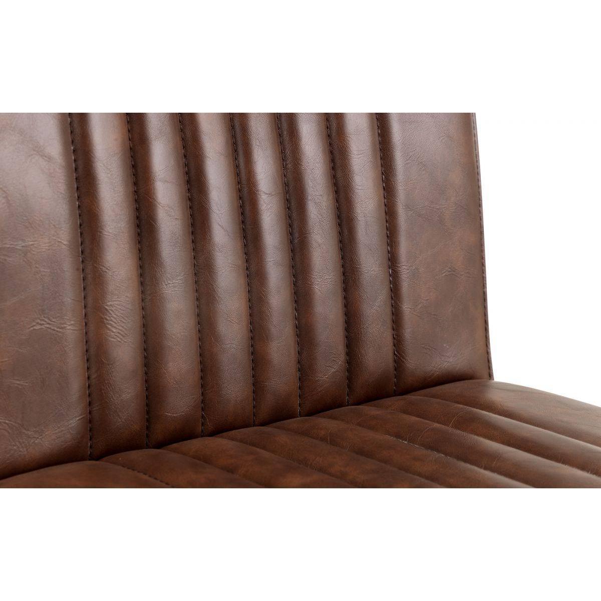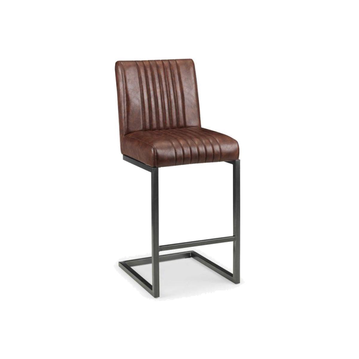 The Brooklyn Bar Stool has an industrial, retro design in a vintage brown faux leather finish with a cantilever style gunmetal leg frame. Offering maximum comfort and style, this padded Bar Stool fits beautifully around the Grafton Bar Table. Featuring metal industrial style legs. Upholstered in brown faux leather with foam padding. Dimensions: 49cm (D) x 41cm (W) x 100cm (H)Seat height : 57.5cm to base of seat pad; 68cm to top of seat pad