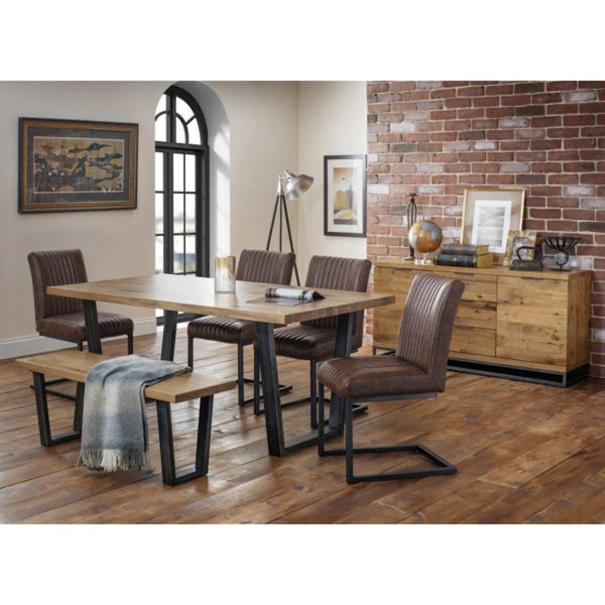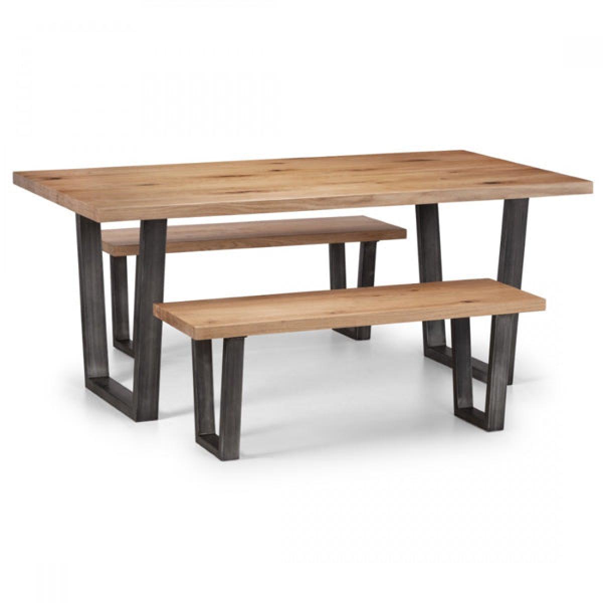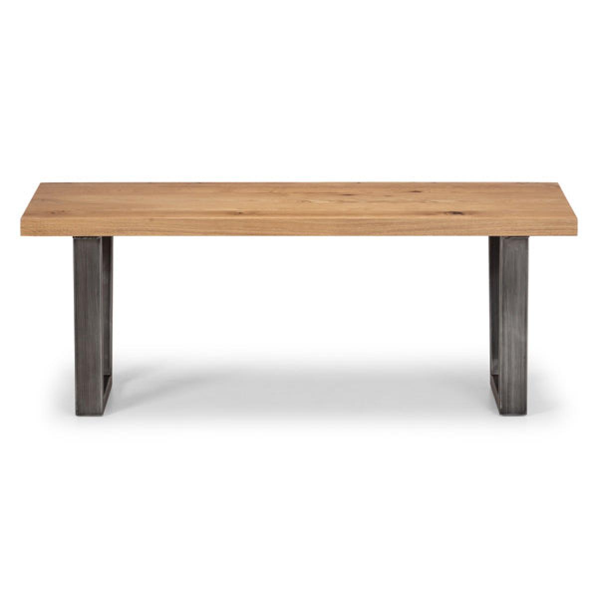 Made from solid oak, this bench offers a rustic finish emphasising the stunning natural wood grain. The Brooklyn Bench offers a vintage edge featuring industrial trapeze style metal legs. This spacious bench can seat up to 2 people, perfect for a wide range of modern decor. Part of the Julian Bowen Brooklyn Dining and Occasional Collection.