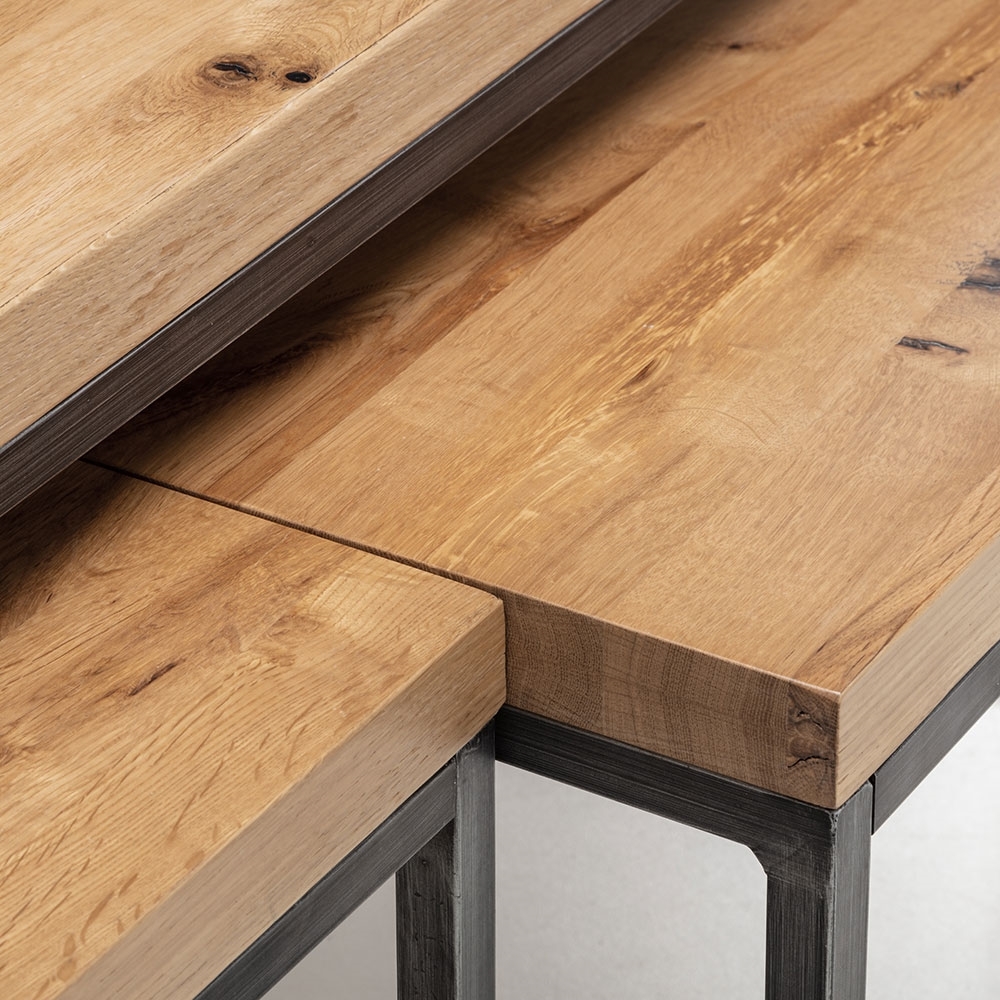 Create an industrial focal point in your living room with the Brooklyn Nesting Coffee Tables, the perfect finishing touch. Or the perfect starting point! With solid oak table tops and sturdy metal legs, the rustic finish oozes vintage style. The two side tables nestled beneath the coffee table make this the ideal space saving solution. A great addition to games night, pull out the side tables to hold all of those snacks then when not in use just tuck them neatly away - sorted. Pair with other pieces from the Brooklyn collection for a coordinating look.