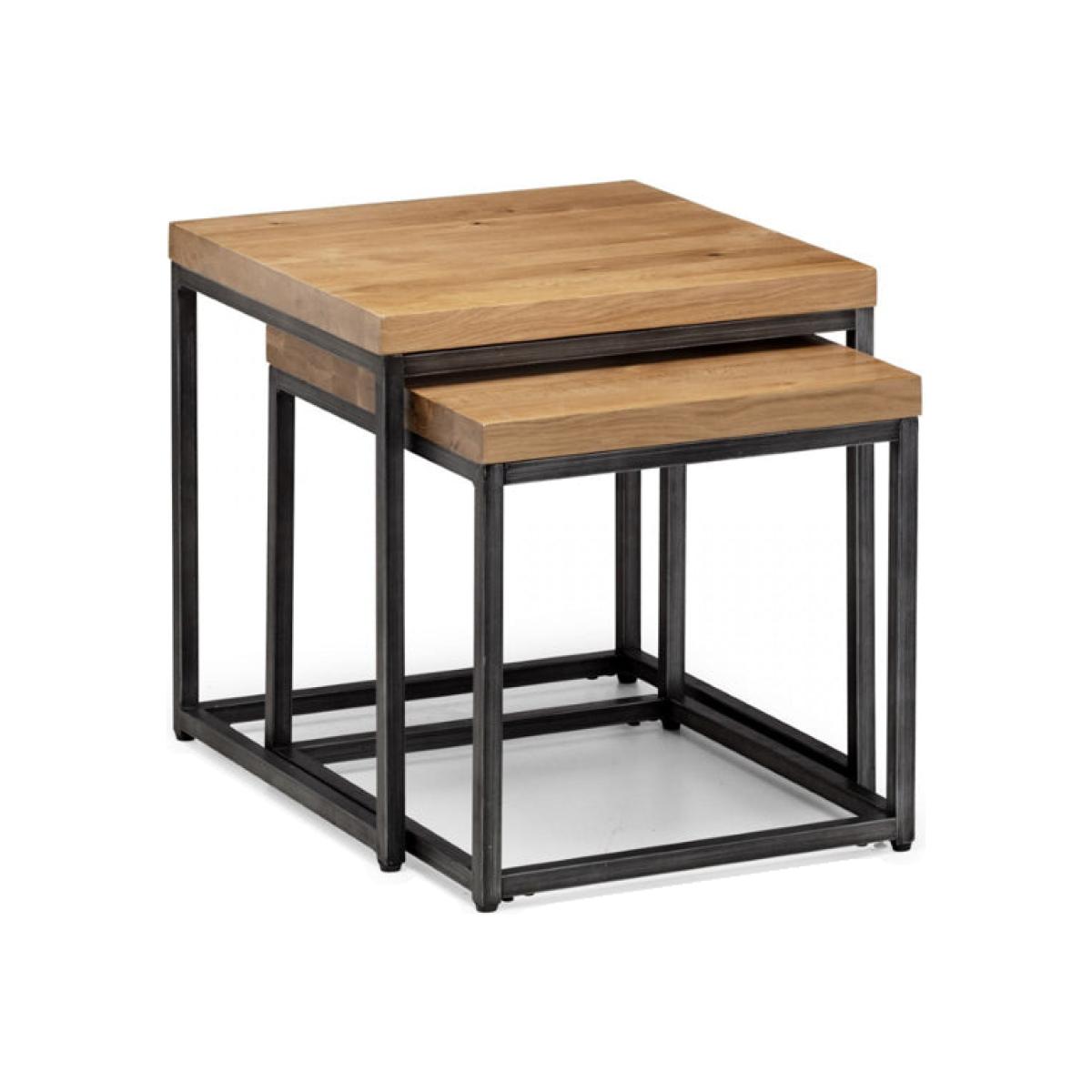 Made from solid oak, these Nesting Lamp Tables offer a rustic finish emphasising the stunning natural wood grain. The Brooklyn Nesting Lamp Tables offer a vintage edge featuring industrial style metal legs. Stylish, functional and well proportioned, these lamp tables are a perfect space saving solution suitable for a wide range of modern decor. Part of the Julian Bowen Brooklyn Dining and Occasional Collection.