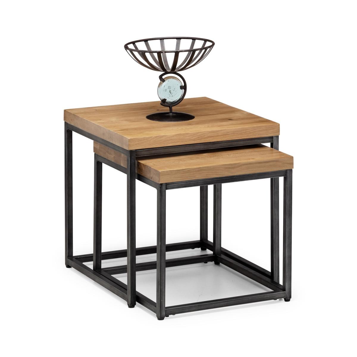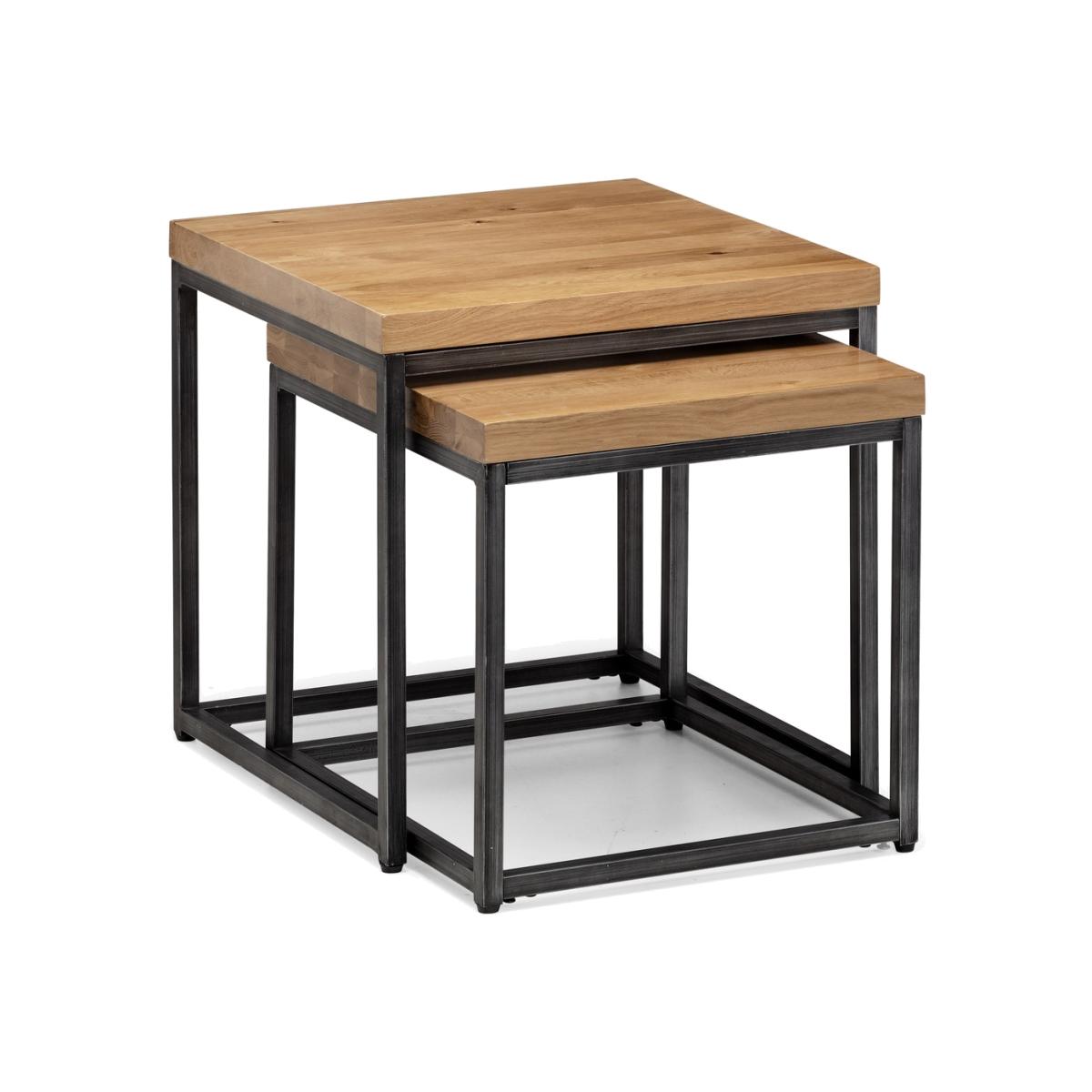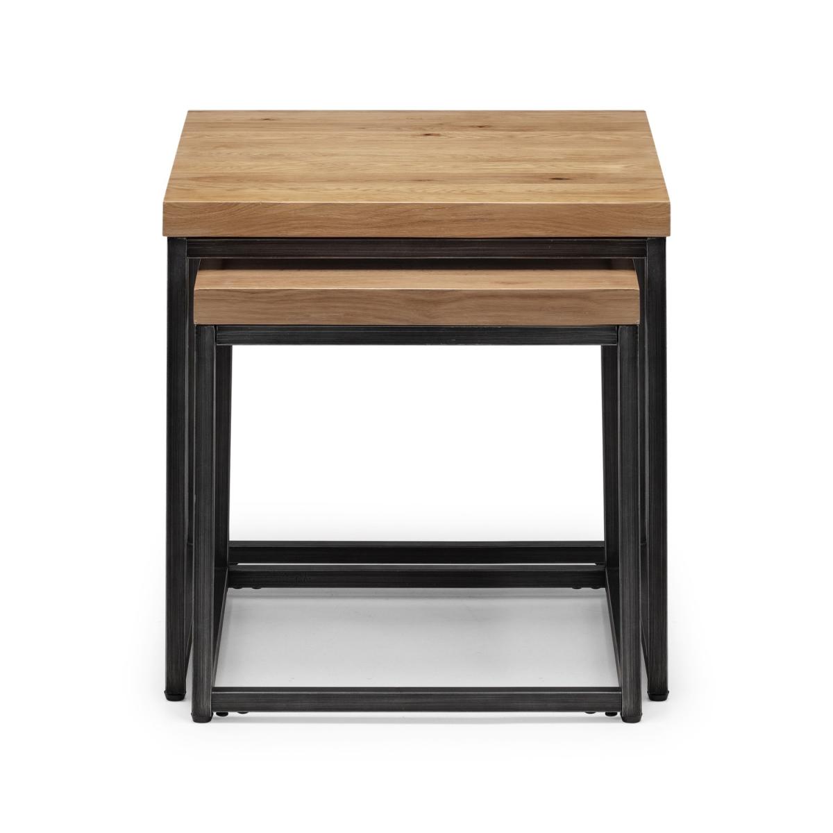 Dimensions W50 x H50 x D50 cm. Made from solid oak these Nesting Lamp Tables offer a rustic finish emphasising the stunning natural wood grain. The Brooklyn Nesting Lamp Tables offer a vintage edge featuring industrial style metal legs. Stylish functional and well proportioned these lamp tables are a perfect space saving solution suitable for a wide range of modern decor. Part of the Julian Bowen Brooklyn Dining and Occasional Collection. Features. Nest of 2 tables. Crafted from solid oak. Featuring industrial style metal legs. Gunmetal grey metal frame Stylish functional and well proportioned. Part of the Julian Bowen Brooklyn Dining and Occasional Collection Assembly required..