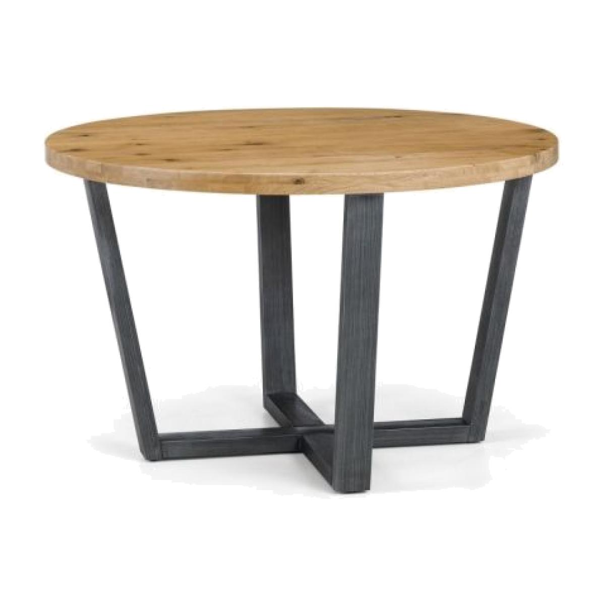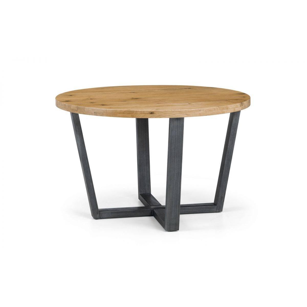 Made from solid oak, this round dining table offers a rustic finish emphasising the stunning natural wood grain. The Brooklyn Round Dining Table offers a vintage edge featuring industrial trestle style metal legs. This spacious table can seat up to 4 people, perfect for a wide range of modern decor. Part of the Julian Bowen Brooklyn Dining and Occasional Collection, also a great match with the Soho Dining Chairs. Dimensions: 120cm (D) x 120cm (W) x 76cm (H)Assembly required.