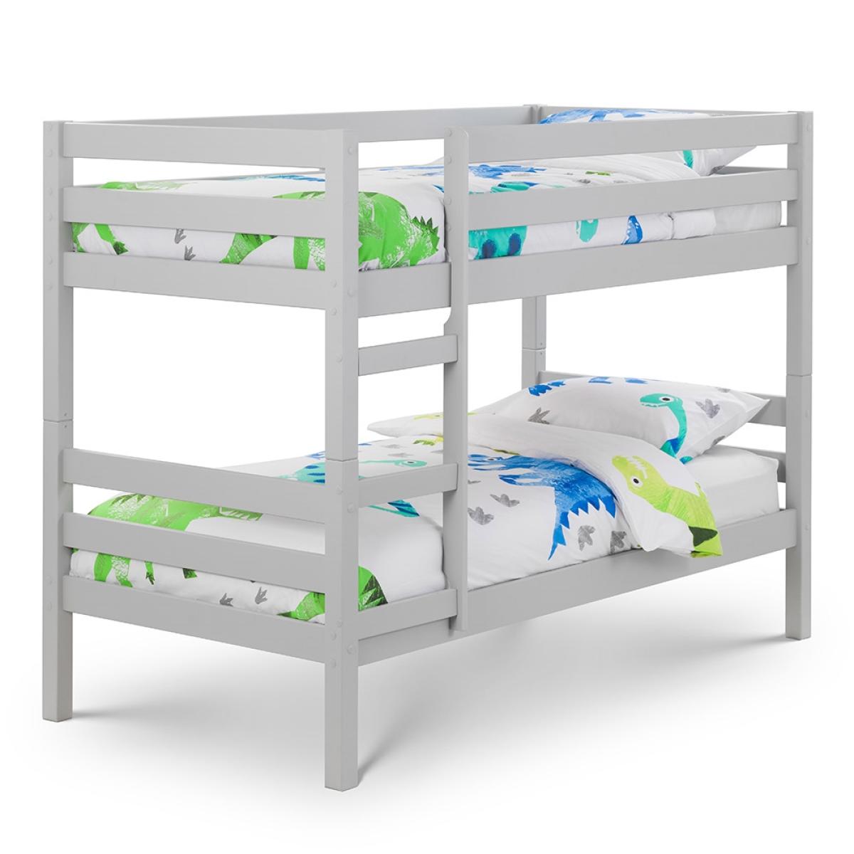 Make the most of your space with the Camden Bunk Bed from Julian Bowen, a wonderful option for smaller bedrooms. With two neutral colours to choose from; surf white and dove grey, there will be an option to suit and blend seamlessly into your interior style. Manufactured from solid pine, this is one sturdy piece of furniture that will see your kiddie through childhood. A perfect bed for siblings plus it will give them more space to play! Now the only thing left to decide is who will be lucky enough to get the top bunk?!.