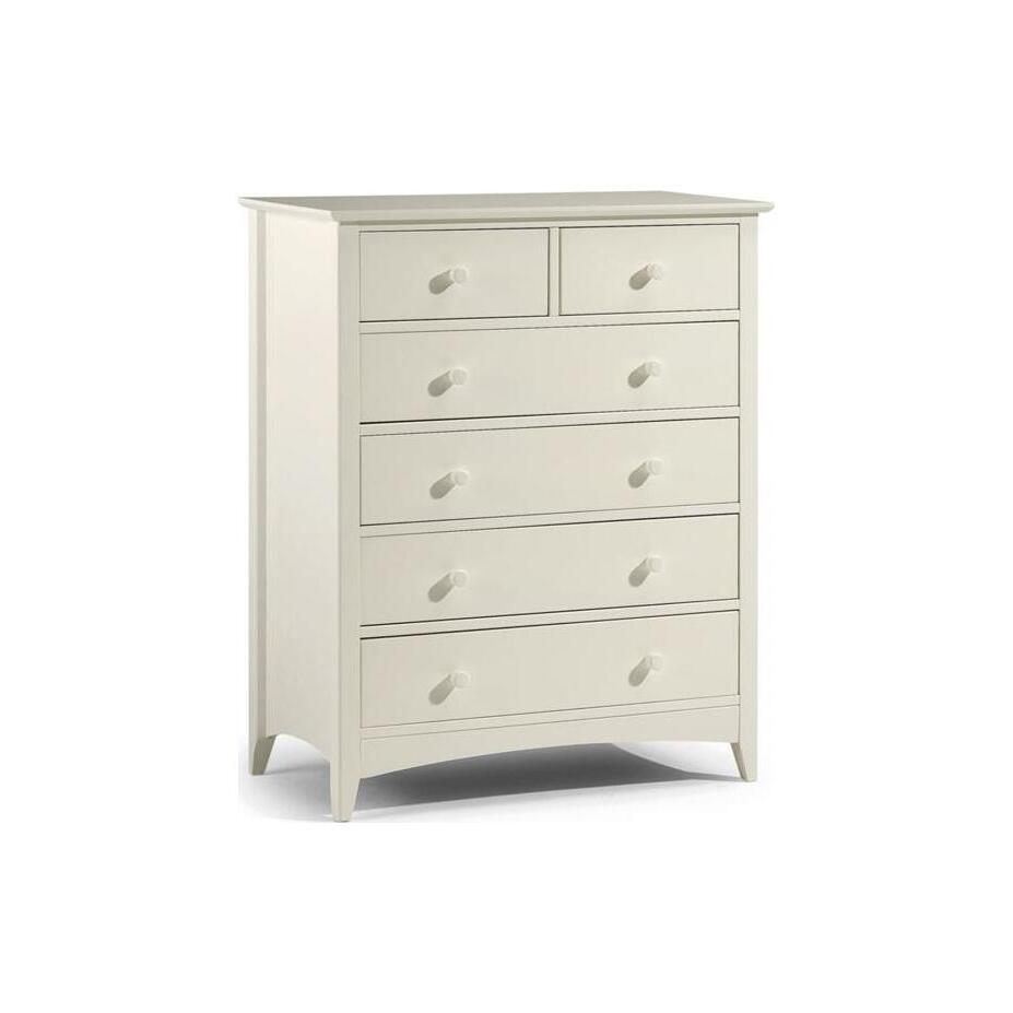 Cameo is a beautiful lacquered bedroom range. Its timeless shaker design is the perfect accompaniment to any interior style and is perfect for grown-up bedrooms and children's bedrooms alike. Solid pine frames ensure a sturdy and durable construction. The Cameo 4+2 chest offers a great storage solution with 2 small drawers and 4 large drawers.