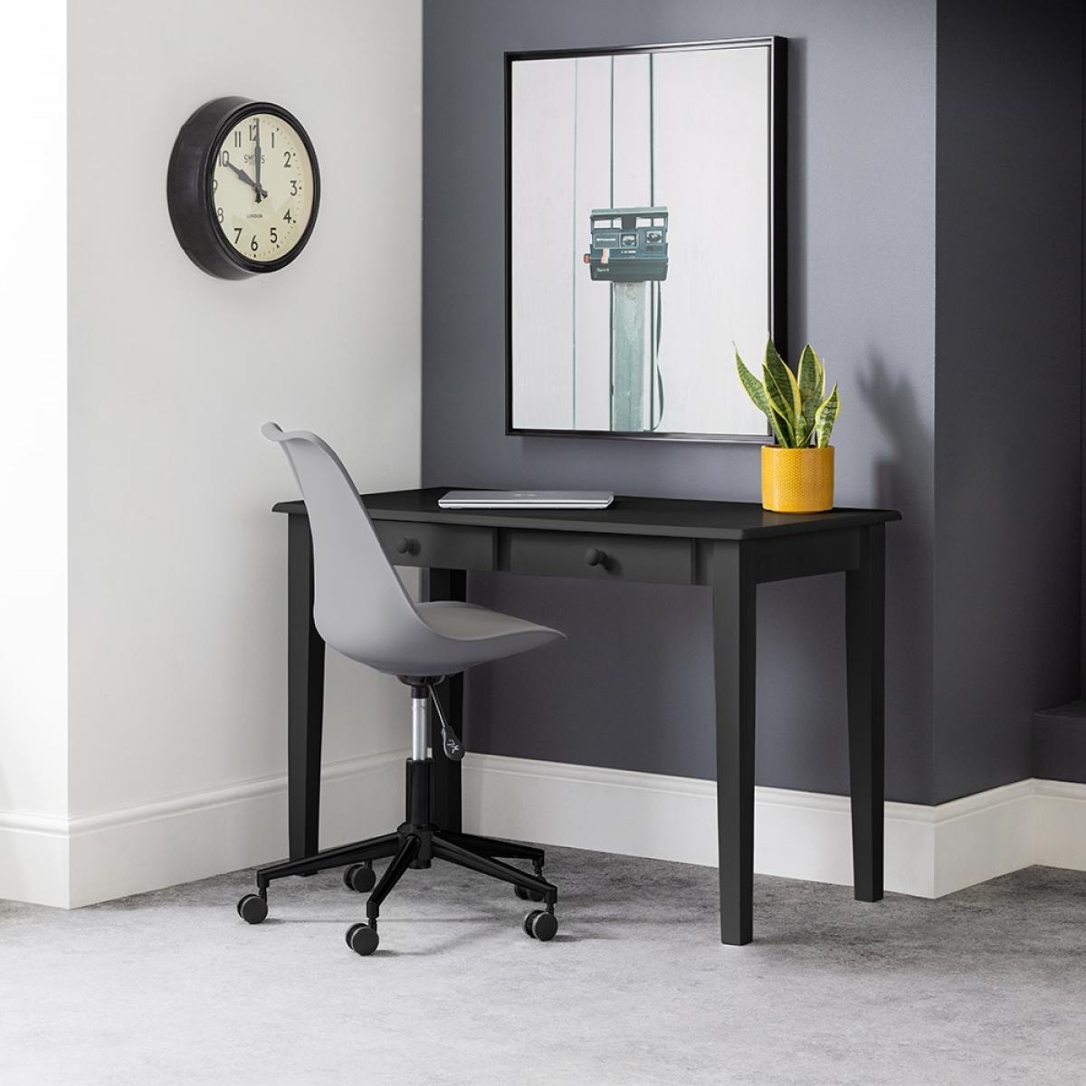 Available in a variety of shades the Carrington Desk from Julian Bowen will fit seamlessly into any space and decor to create the perfect working from home environment. With two handy drawers for storage, there will be plenty of room to store important papers and documents as well as all of those stationery essentials. Style up with a leafy potted friend to add some greenery to your workspace and not forgetting a coaster for those cups of tea to power you through!.