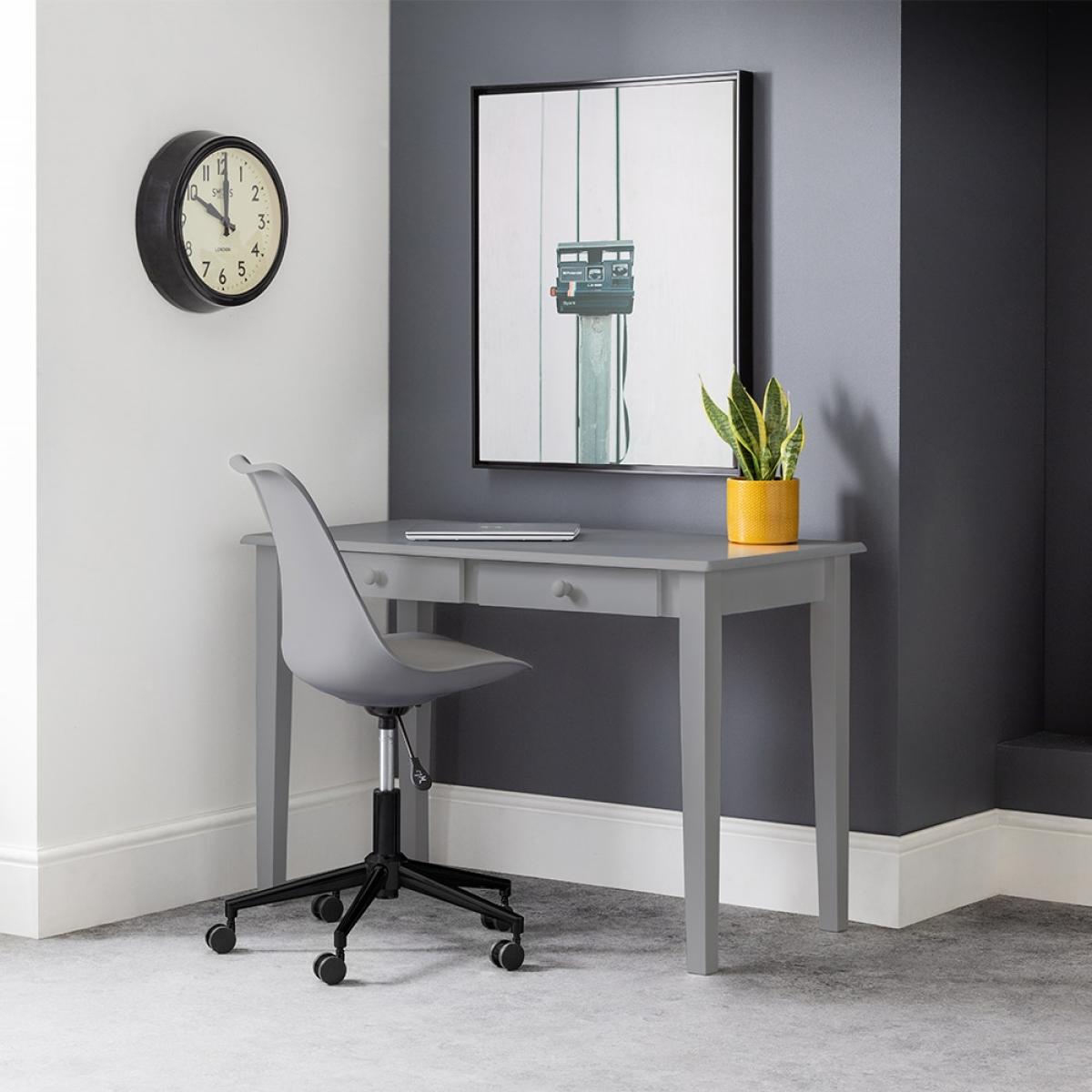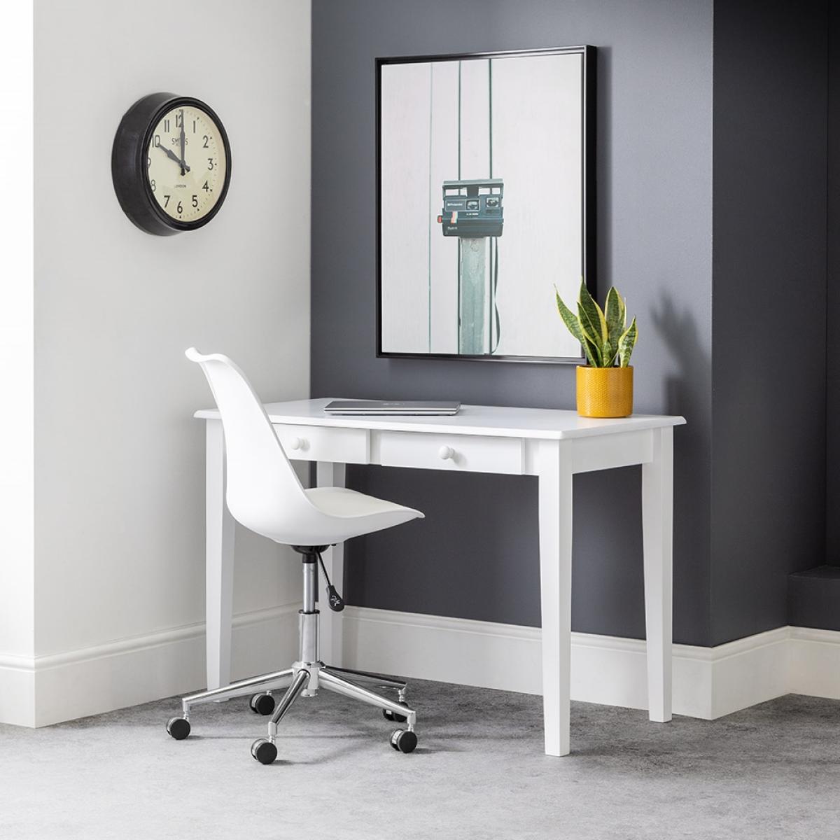 Available in a variety of shades the Carrington Desk from Julian Bowen will fit seamlessly into any space and decor to create the perfect working from home environment. With two handy drawers for storage, there will be plenty of room to store important papers and documents as well as all of those stationery essentials. Style up with a leafy potted friend to add some greenery to your workspace and not forgetting a coaster for those cups of tea to power you through!.
