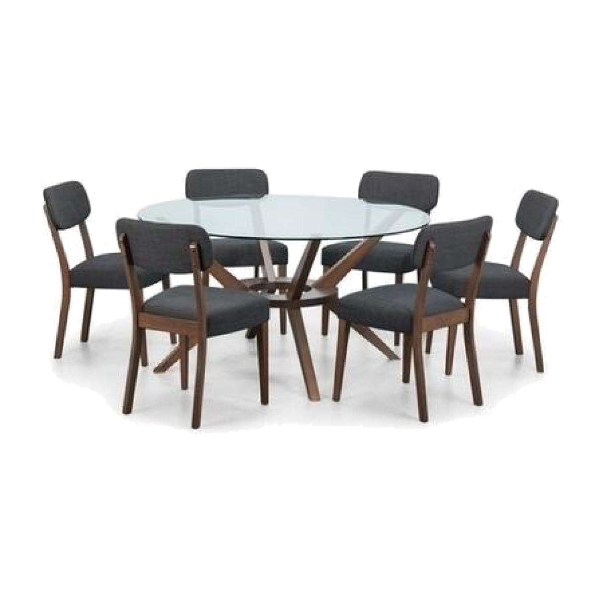 The Julian Bowen Chelsea large dining set is perfectly paired with 6 Farringdon dining chairs. The solid beech frame is finished in a durable walnut effect which is complimented by the tempered glass table top.