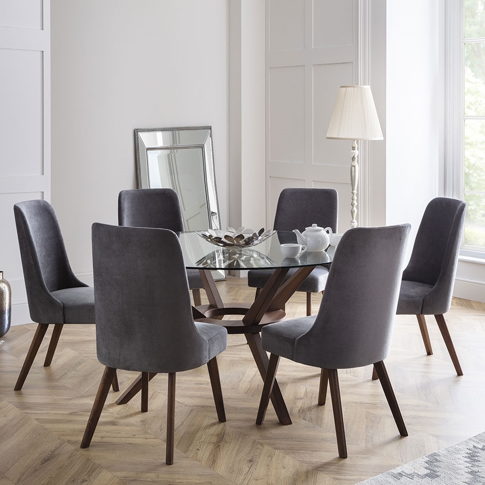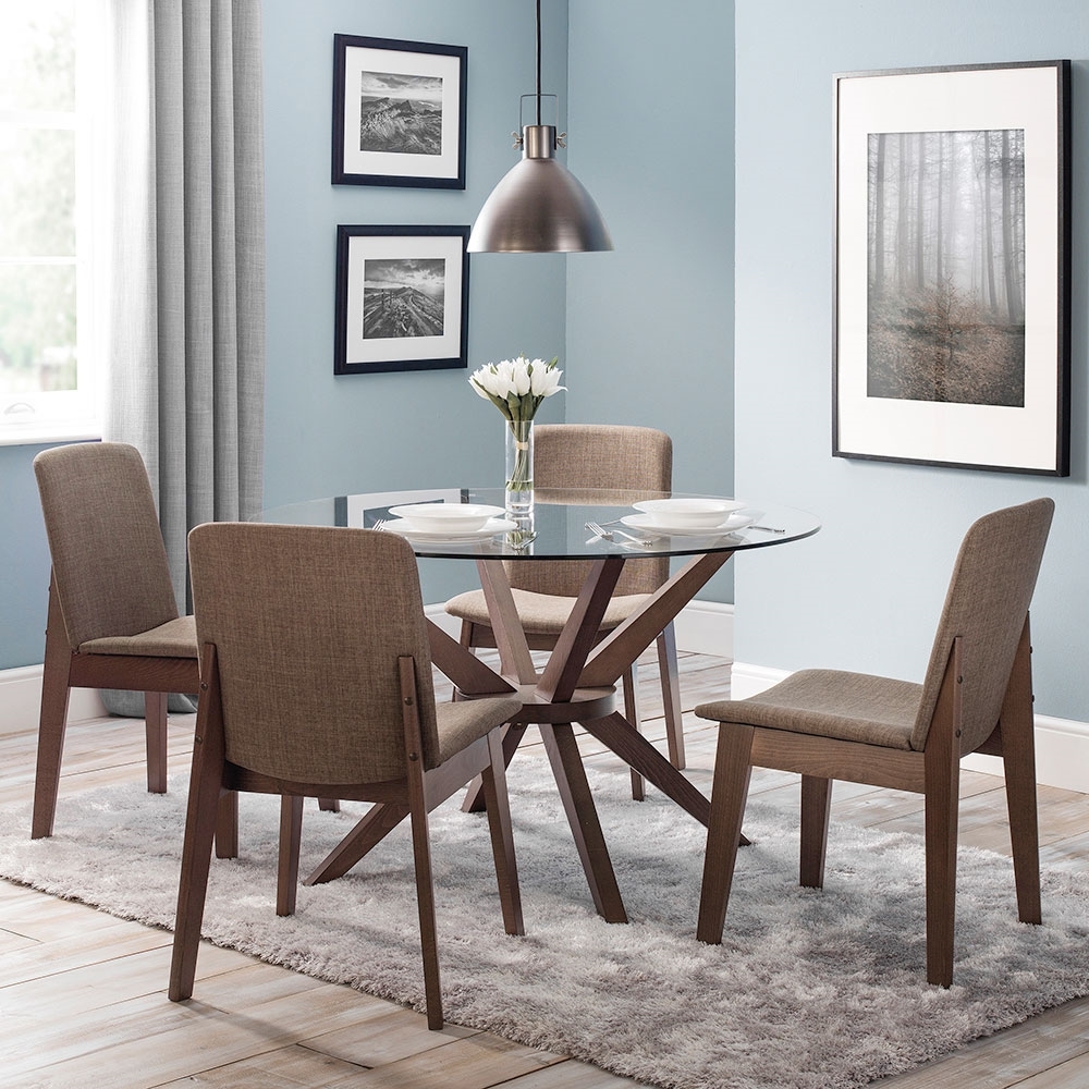 Create a striking centre piece in your dining room or kitchen with the Chelsea Dining Table from Julian Bowen. Available in 2 sizes, enjoy family meals and evening entertaining around this retro inspired table. Making smaller spaces feel bigger; the round, tempered glass top will open up your chosen room. Made from beech wood and finished in a warm walnut colourway, the sculptural wooden base is sure to turn a few heads! With a choice of dining chairs available separately, create a sophisticated set to suit your home!.