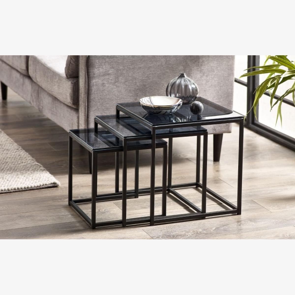 The Julian Bowen Chicago Nest of 3 Tables - Smoked Glass brings a touch of sophisticated urban style to any living space. These sleek, modern tables feature a stunning smoked glass top that adds depth and elegance, creating a visual interest with its subtle, dark tint. The nest of three tables allows for versatile use, whether you need extra surface space or a stylish way to display decor, drinks, or snacks. The minimalist metal frames provide a chic contrast to the luxurious glass, ensuring durability while maintaining an airy, contemporary look. Perfect for both small and larger spaces, the set’s stackable design makes it a practical yet fashionable solution for dynamic living areas, combining functionality with high-end appeal. The Julian Bowen Chicago Nest of Tables is the ideal way to introduce a sense of modern elegance and effortless style to your home. Dimensions: Depth 45cm Width 45cm Height 45cm Please note All screens vary in colour reproduction and whilst every effort has been made to display the colour as accurately as possible it is for guidance only.