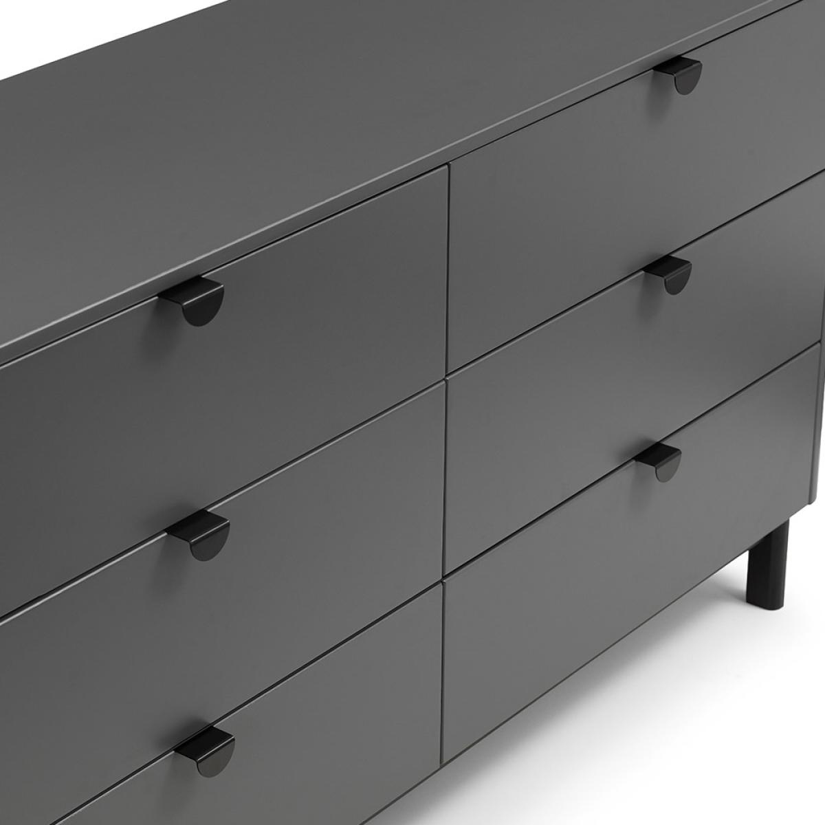 You'll never be short of storage space with the stylish Chloe 6 Drawer Wide Chest from Julian Bowen. Finished in a gorgeous storm grey lacquer with sleek satin black wooden legs and handles this piece is a real head-turner. You'll be able to live out all of your Marie Kondo fantasies with this spacious set of drawers and have everything organised and folded in no time! Team with other pieces from the Chloe range to create a beautifully relaxed space.