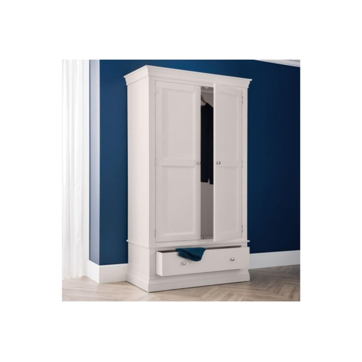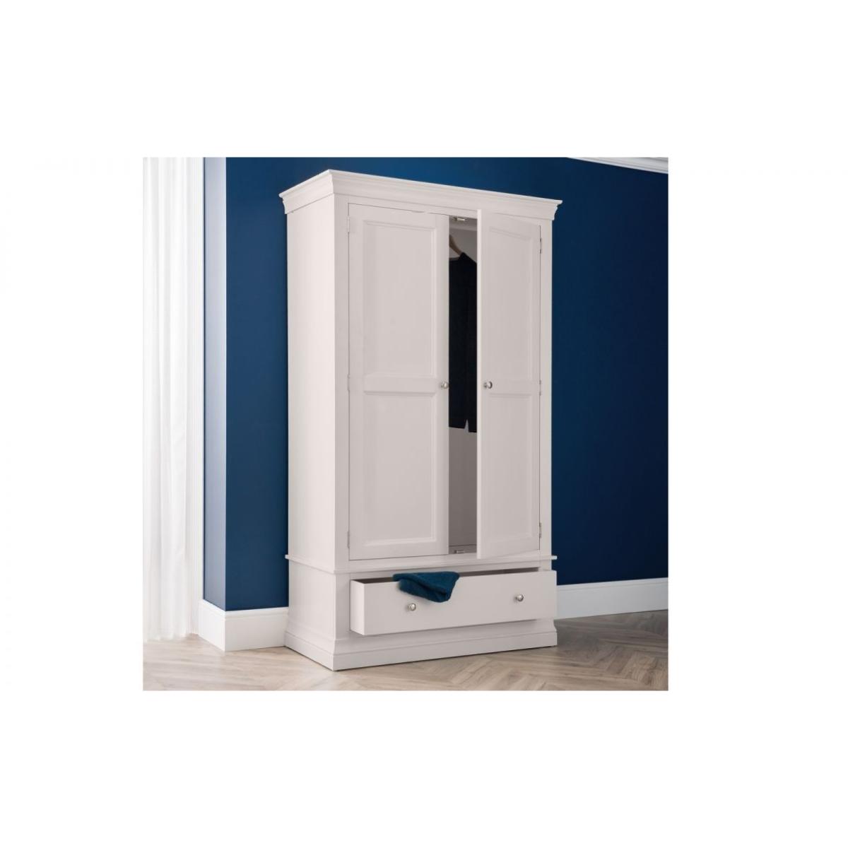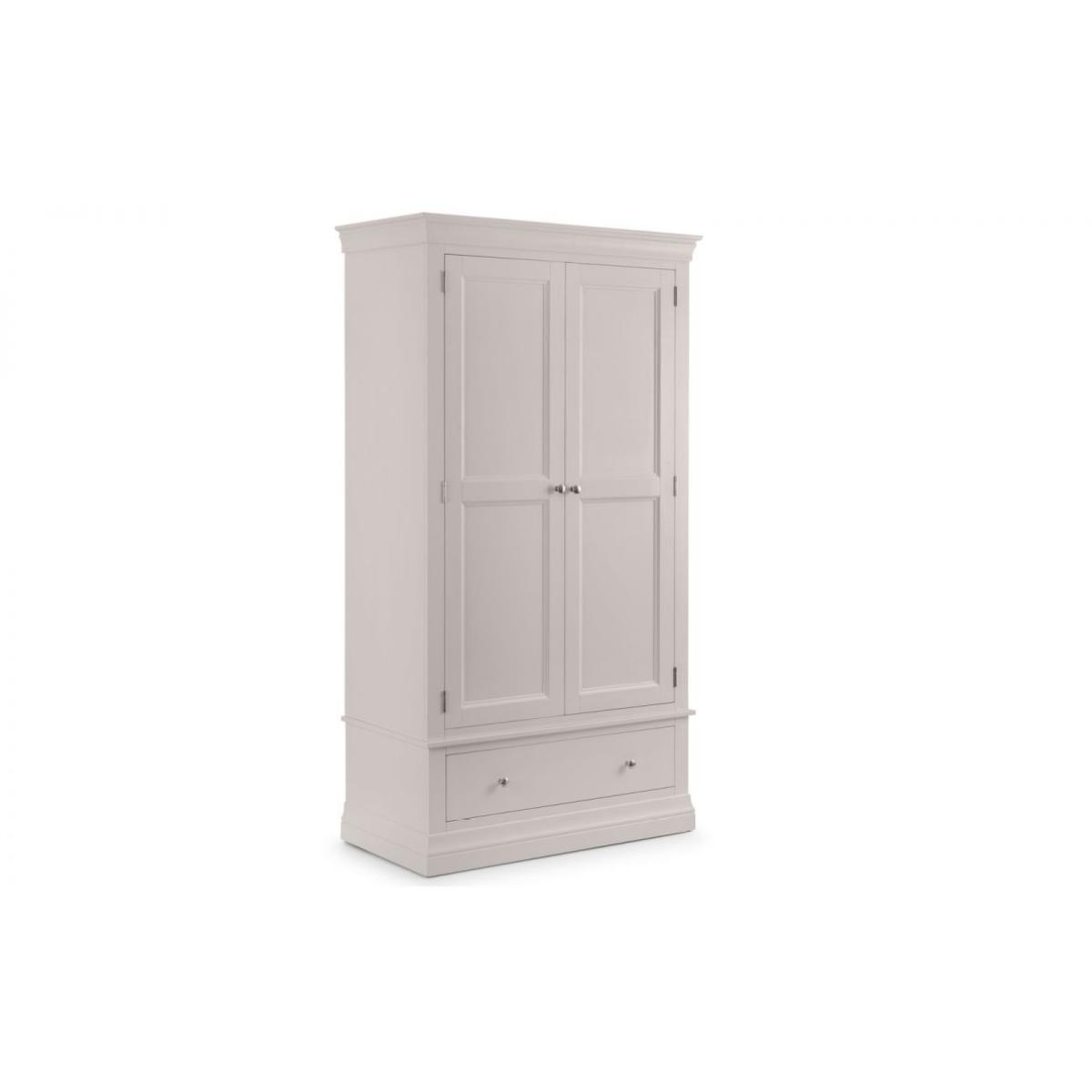 Julian Bowen Clermont 2 Door 1 Drawer Wardrobe – Light Grey The Julian Bowen Clermont 2 Door 1 Drawer Wardrobe in Light Grey combines classic design with modern functionality, making it an excellent addition to any bedroom. Its stylish, minimalist look, coupled with practical storage solutions, helps you keep your space neat and organized, while effortlessly complementing a variety of interior styles. Crafted from durable materials, this wardrobe features two spacious doors that open to reveal a generous hanging rail, perfect for storing your clothes, coats, and accessories. Below, the single drawer offers additional storage for shoes, folded garments, or other essentials, keeping your bedroom tidy and clutter-free. The soft light grey finish adds a contemporary touch to any room, brightening up your space with its neutral tone. The wardrobe is designed with easy-to-grip metal handles, ensuring smooth opening and closing of the doors and drawer. Whether you're looking for extra storage in a small space or simply need a stylish, functional piece, the Julian Bowen Clermont Wardrobe is the perfect choice. Features: 2 doors with ample hanging space for clothes, coats, and accessories 1 drawer for additional storage of shoes, folded clothing, or miscellaneous items Light grey finish for a sleek, modern look that suits a variety of decor styles Durable construction with metal handles for smooth functionality Ideal for bedrooms, guest rooms, or even as part of a larger storage solution Space-efficient design, perfect for smaller rooms or apartments Easy to assemble with straightforward instructions The Julian Bowen Clermont 2 Door 1 Drawer Wardrobe offers a perfect blend of style, durability, and practicality, providing an attractive and functional storage solution for your bedroom. Dimensions: Height 192cm Width 110cm Depth 56cm All screens vary in colour reproduction and whilst every effort has been made to display the colour as accurately as possible it is for guidance only.