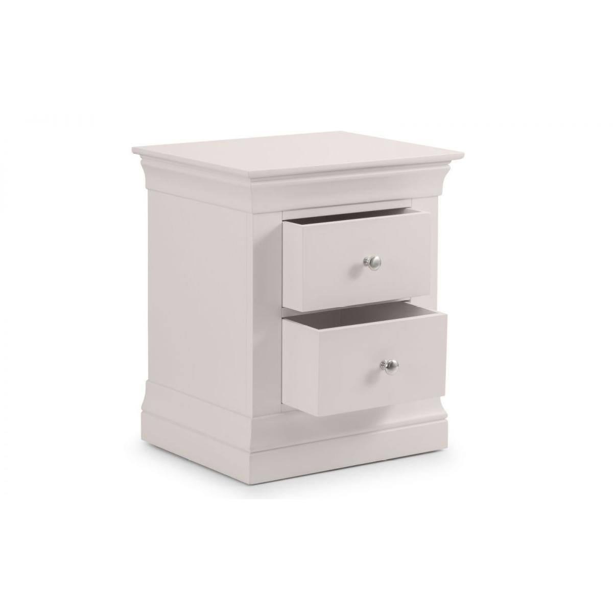 Julian Bowen Clermont 2 Drawer Bedside – Light Grey The Julian Bowen Clermont 2 Drawer Bedside in Light Grey offers both style and practicality, making it the perfect addition to any modern bedroom. Its sleek and contemporary design provides a stylish storage solution for your bedside essentials, while the light grey finish brings a soft, neutral tone that complements a wide range of bedroom decor styles. Featuring two spacious drawers, this bedside table provides ample storage for everything from books and reading glasses to remote controls and other personal items, keeping your space organized and clutter-free. The metal handles add a touch of modern elegance and ensure smooth operation for easy access to your belongings. Ideal for smaller spaces or larger rooms, the Clermont 2 Drawer Bedside is crafted from high-quality materials for durability, ensuring it remains a practical and stylish part of your bedroom for years to come. Features: 2 spacious drawers for convenient bedside storage Light grey finish for a clean, contemporary look that fits with any bedroom decor Metal handles for smooth drawer operation and a modern touch Sturdy and durable construction for long-lasting use Ideal for storing books, gadgets, personal items, or night-time essentials Easy to assemble with clear instructions With its combination of modern design and practical storage, the Julian Bowen Clermont 2 Drawer Bedside is the perfect piece to enhance the functionality and aesthetic of your bedroom. Dimensions: Height 59cm Width 50cm Depth 40cm All screens vary in colour reproduction and whilst every effort has been made to display the colour as accurately as possible it is for guidance only.