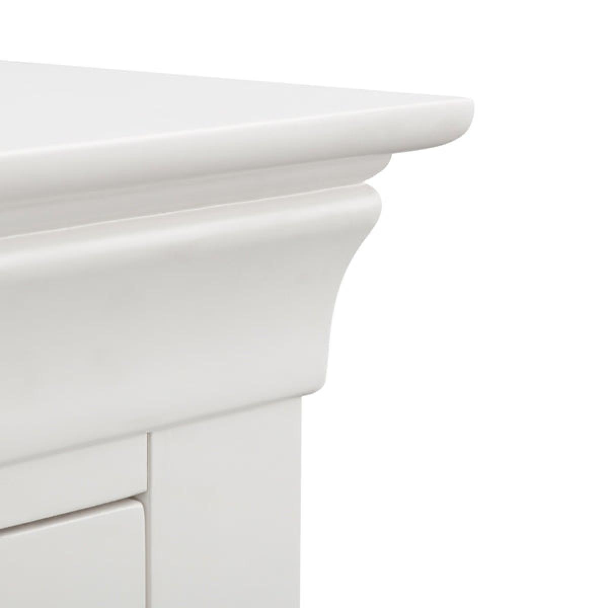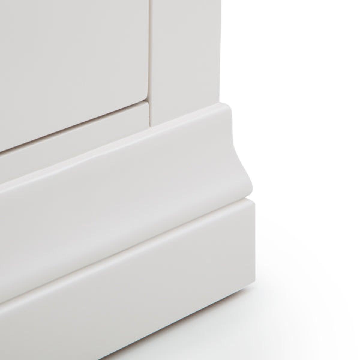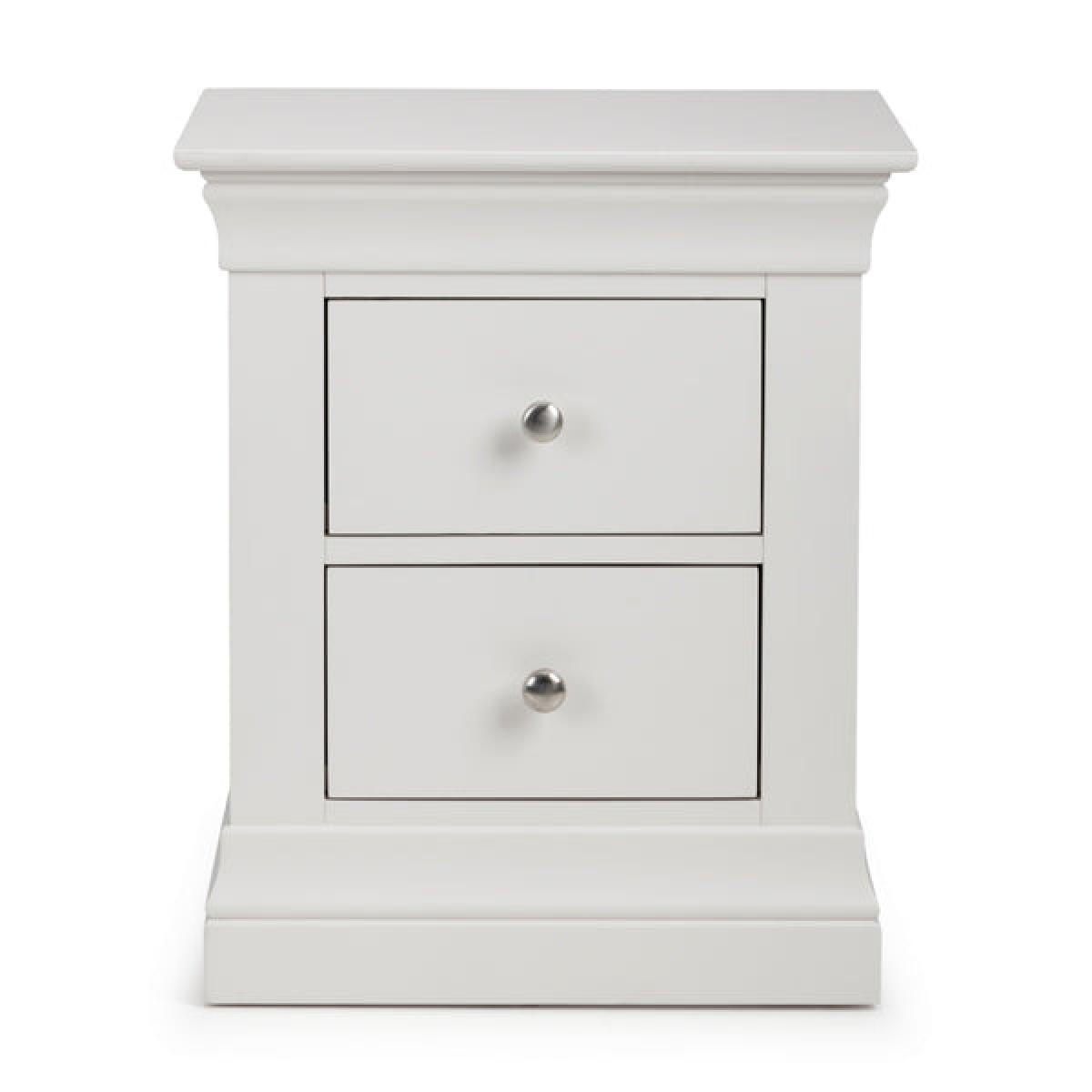 The Clermont Bedroom Collection is finished in a striking white lacquered finish, with simple clear lines that add a feeling of light and space. Crafted from Pine and MDF, featuring brushed steel handles, this elegant French inspired design is suitable for both contemporary and traditional settings. The Clermont Bedside has 2 drawers, suitable to stow away your nighttime essentials. H: 100 W: 90 D: 45 cm. H: 80 W: 120 D: 45 cm.