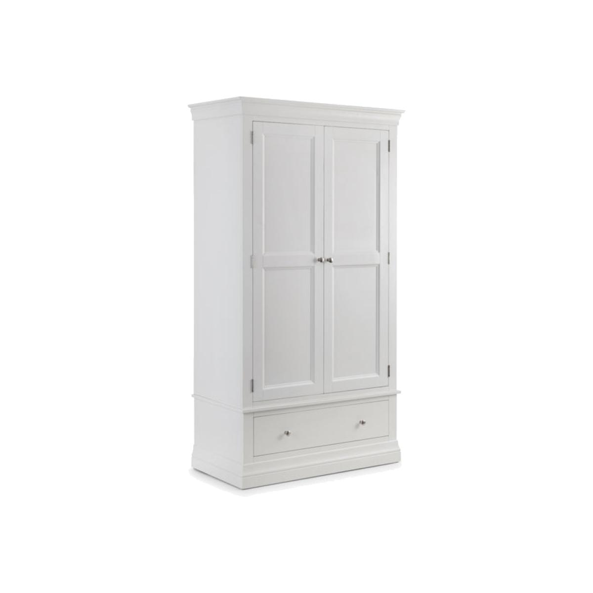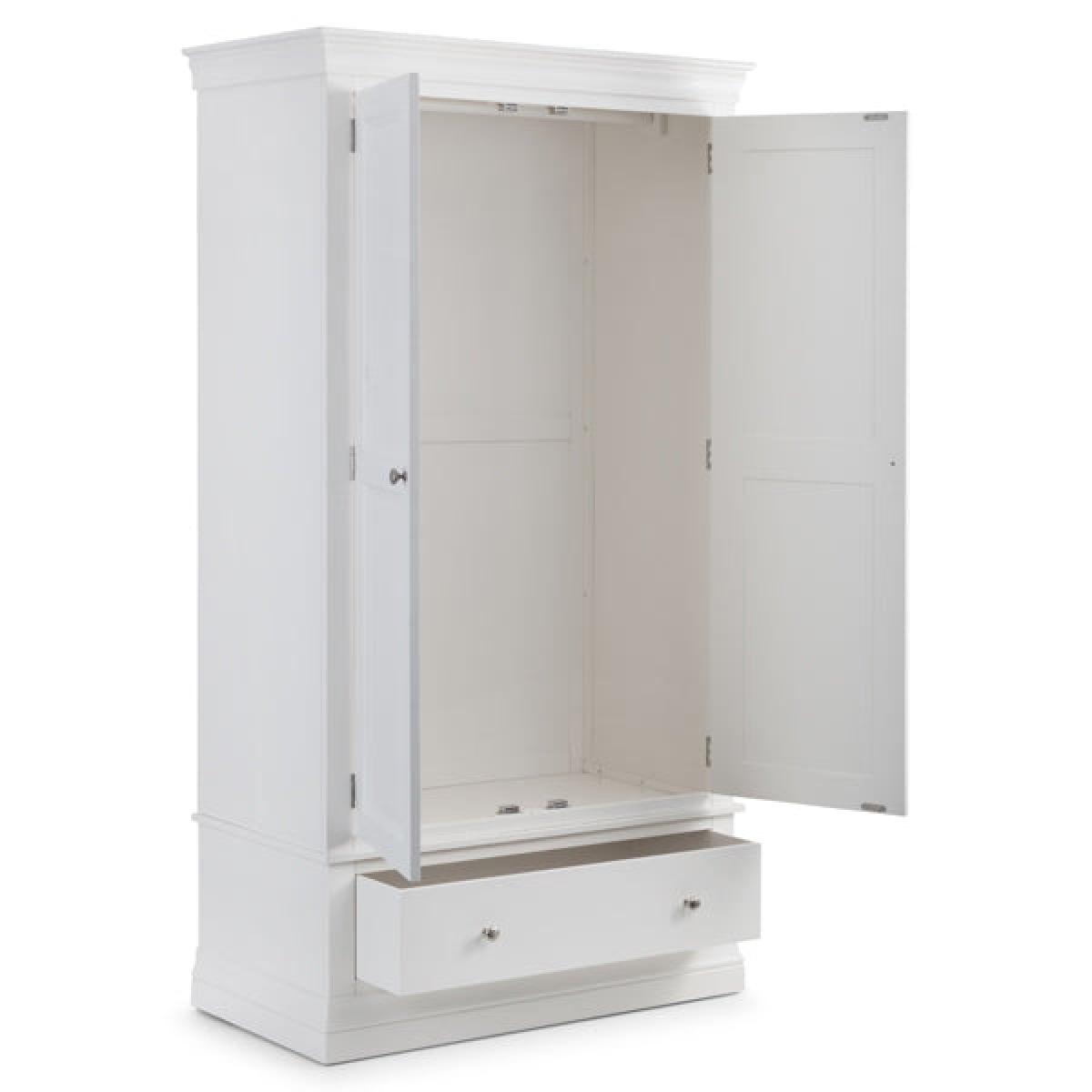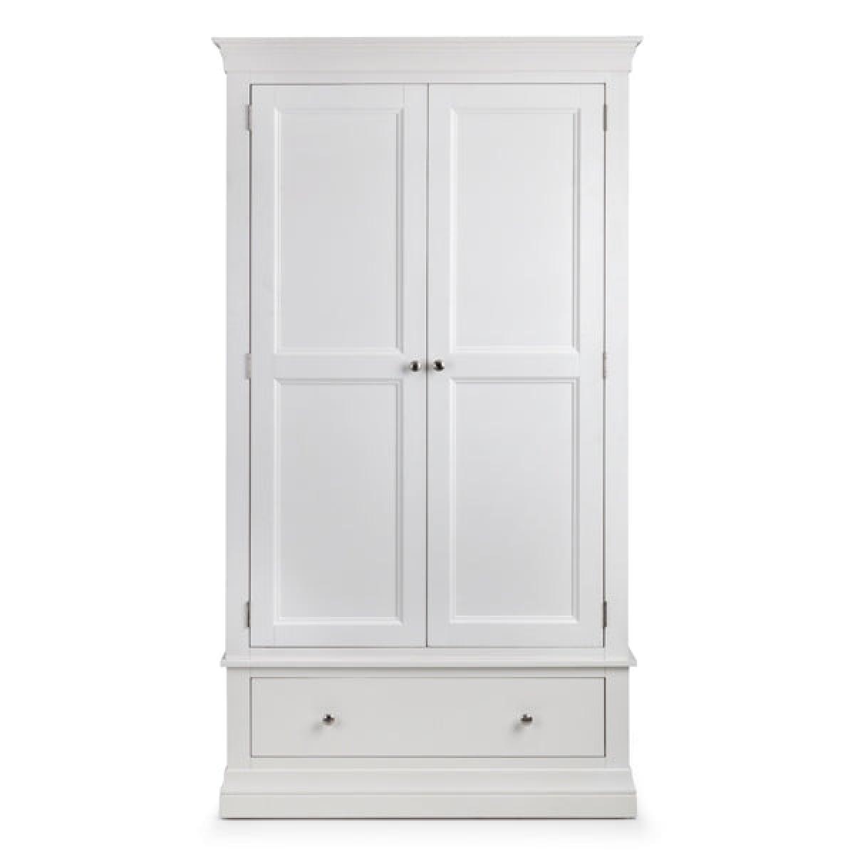 The Clermont Bedroom Collection is finished in a striking white lacquered finish, with simple clear lines that add a feeling of light and space. Crafted from Pine and MDF, featuring brushed steel handles, this elegant French inspired design is suitable for both contemporary and traditional settings. The Clermont 2 Door 1 Drawer Wardrobe offers a generous hanging space, along with a full width drawer for bulkier knitwear.