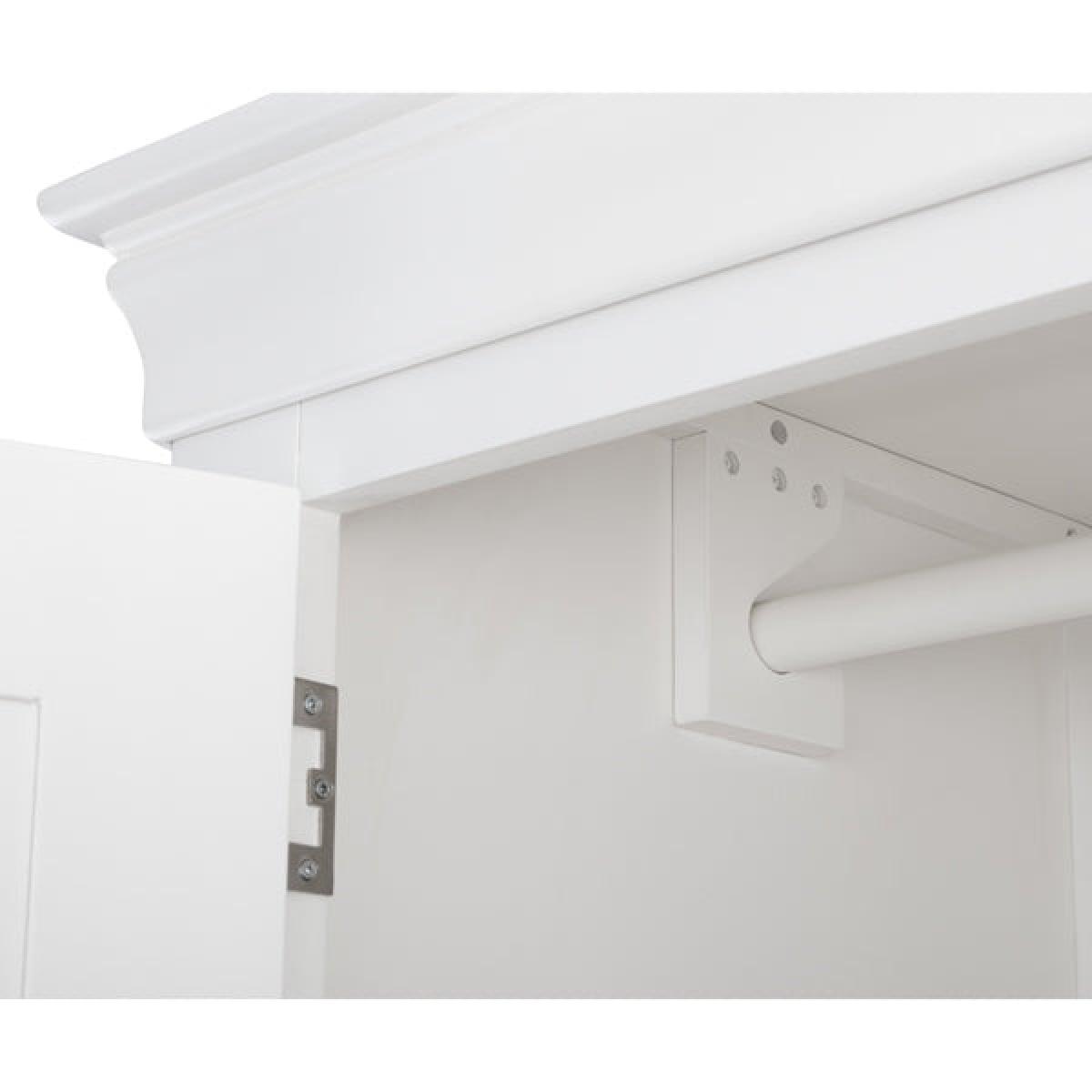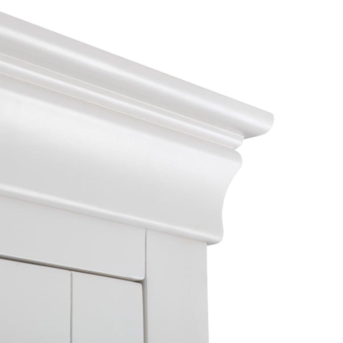 I love this wardrobe for its classic, timeless appeal and versatile design. It works particularly well in traditional or country-style interiors, but can also complement modern spaces with its clean lines and neutral finish. For styling tips, consider pairing it with light, soft-coloured room décor or adding vintage accessories to enhance its charm. Its sizeable storage capacity makes it practical for organising clothing with both hanging space and drawers, so it’s perfect for creating a neat, clutter-free bedroom. To keep the look cohesive, dress the top with a decorative tray or some simple botanical touches, which add character without overwhelming the space.