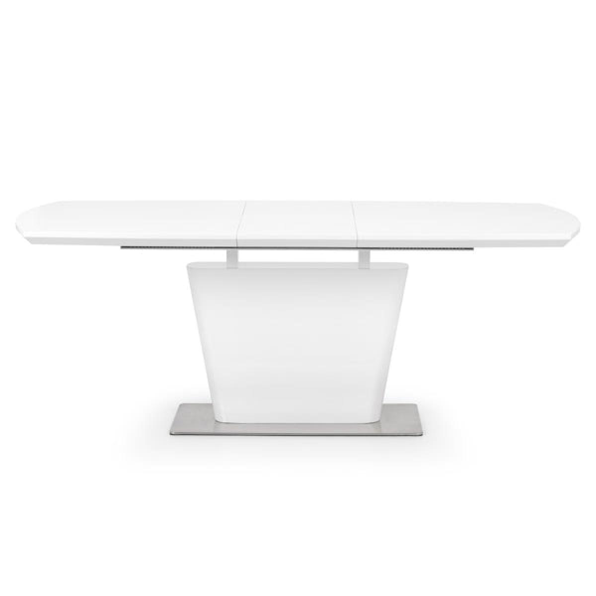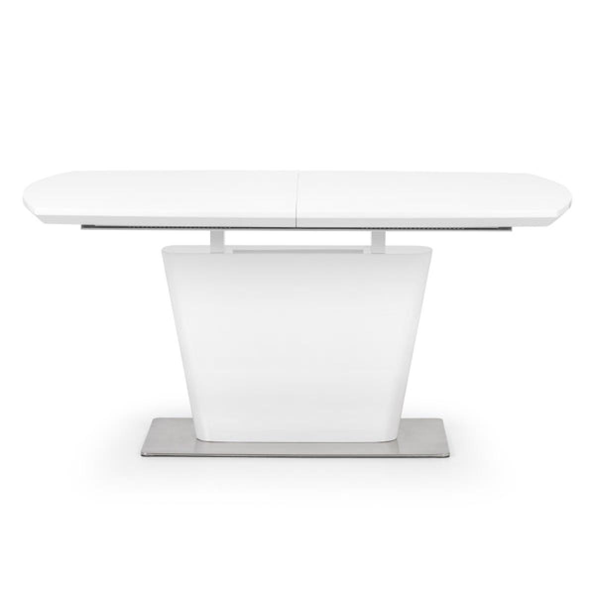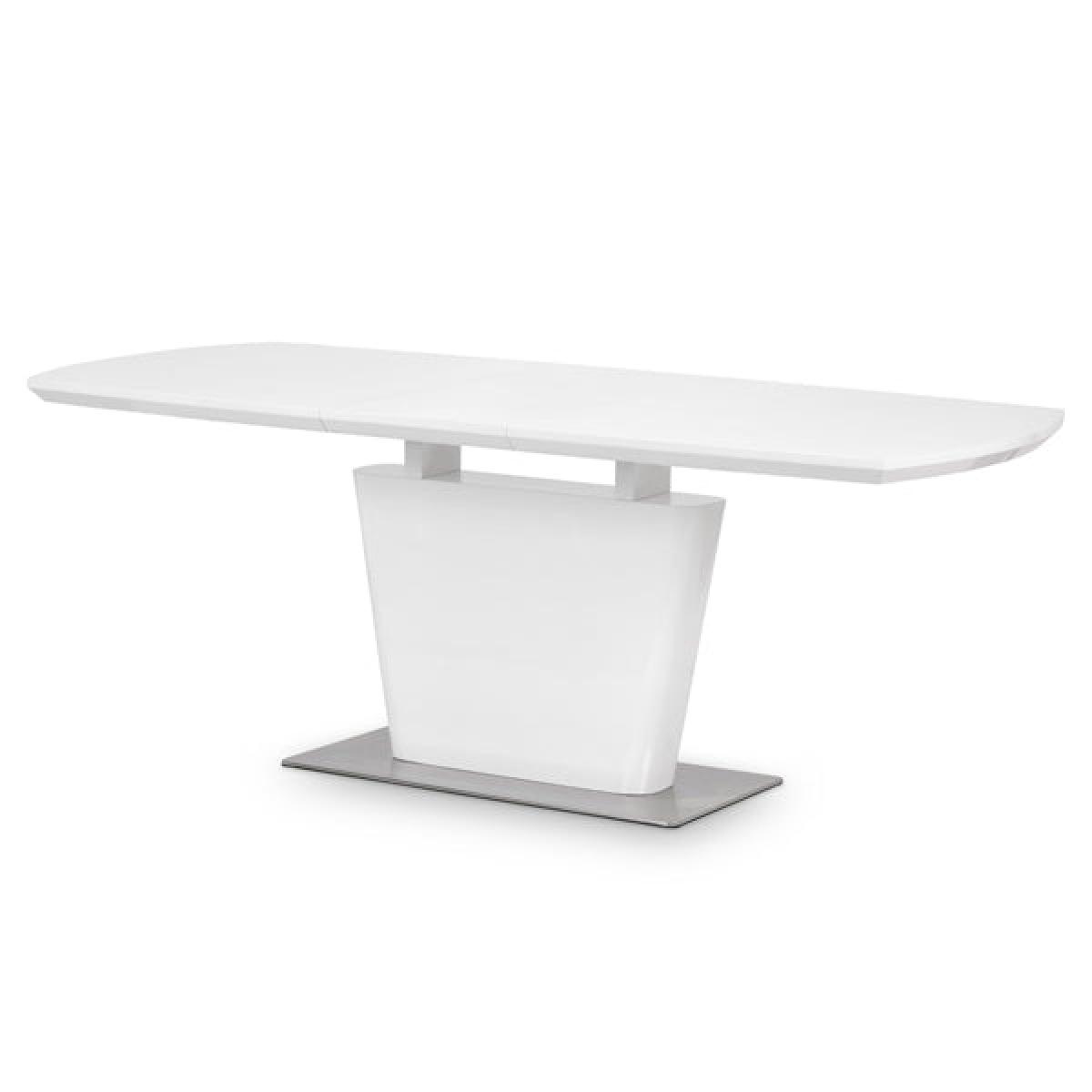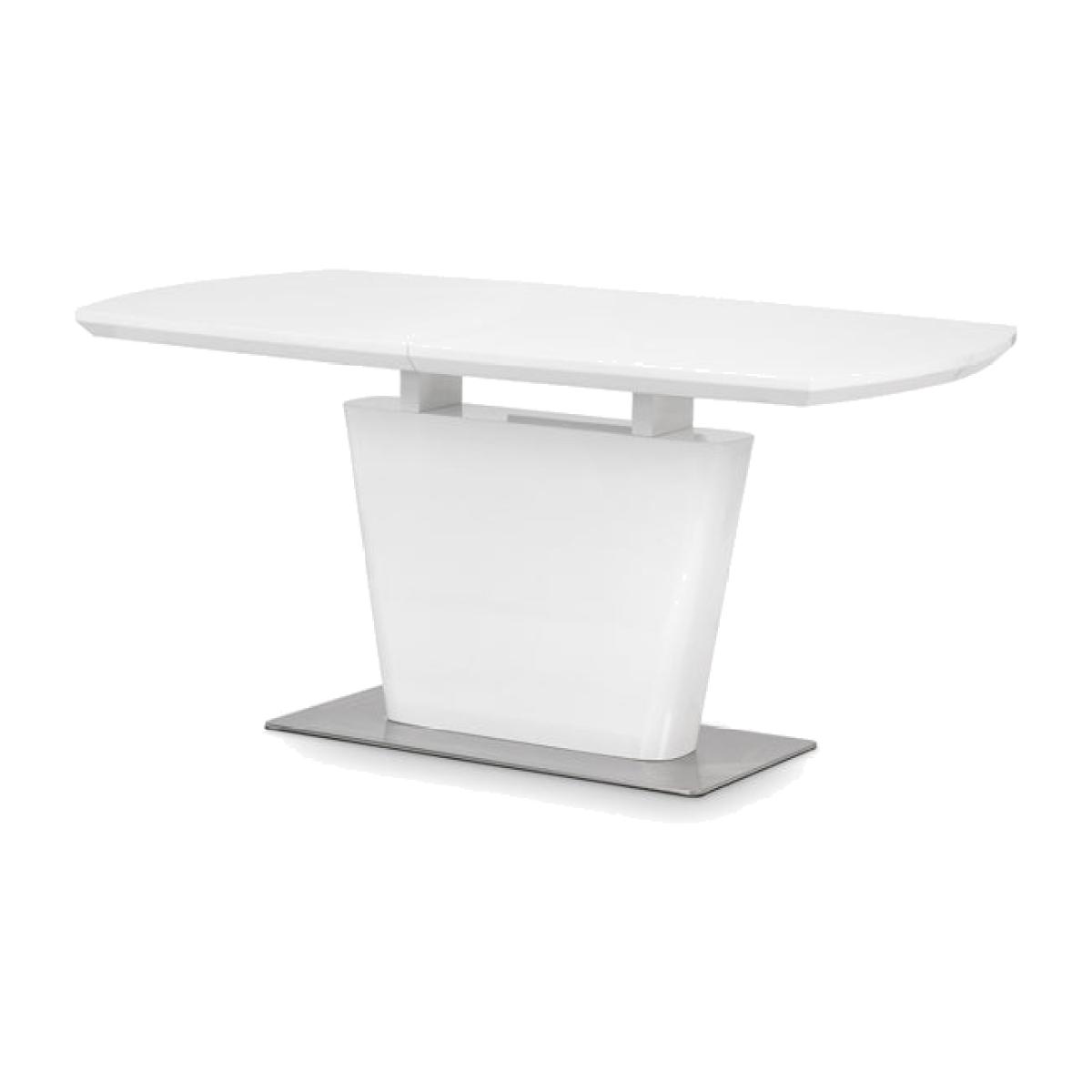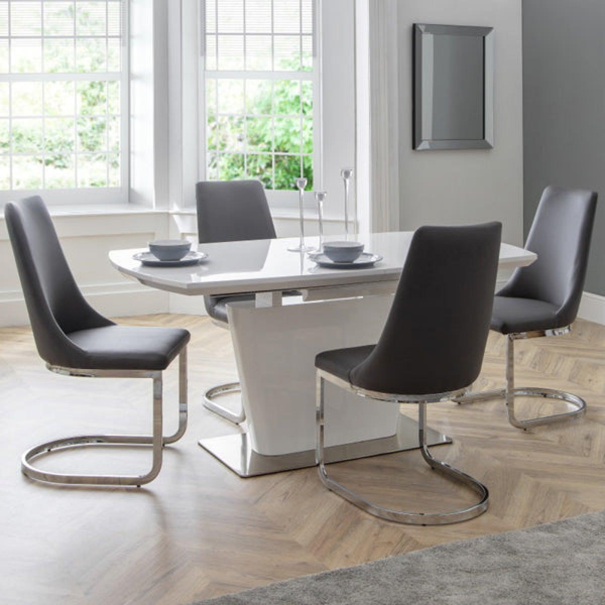 The Como extending dining table is a sleek, modern design finished in a crisp white high gloss with a sturdy chrome pedestal base. This spacious table features a butterfly extension system that is easy to use and stores within the table when not in use, comfortably seating 6 people. This striking dining table will be a lasting style statement in any dining room. Complete the glamorous look with the Como cantilever dining chairs.