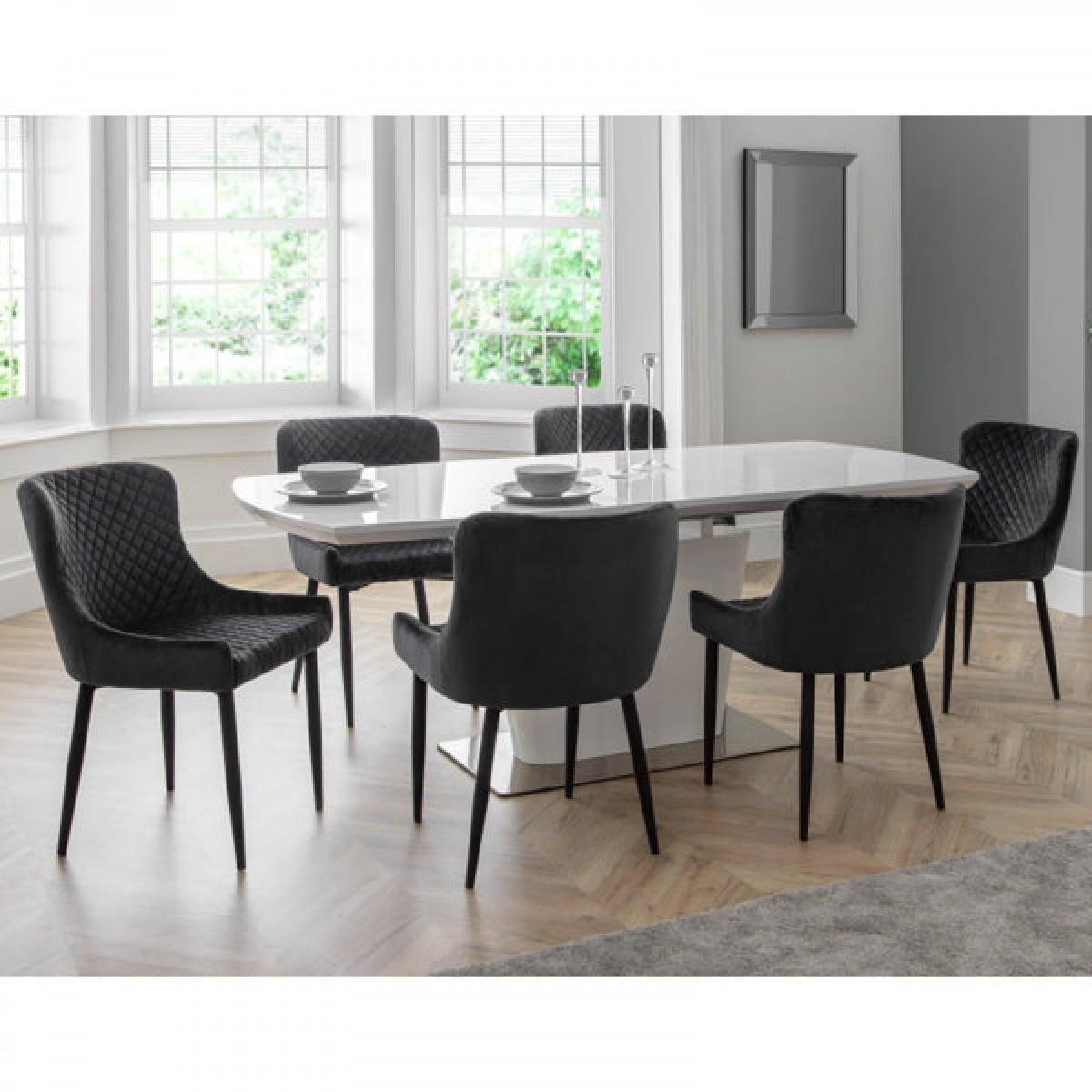 I love this table for its sleek, high-gloss finish that instantly elevates a contemporary dining space. The Julian Bowen Como is versatile and works well in modern and minimalist interiors, where its clean lines reflect a sense of order and sophistication. Its extending feature makes it practical for both everyday family meals and larger gatherings, without compromising on style. To style around it, consider pairing with neutral-toned chairs for a fresh look, or add colourful accessories and tableware for a pop of personality. Its glossy surface also lends itself well to layered textures and metallic accents, creating an elegant, functional focal point in any dining room.