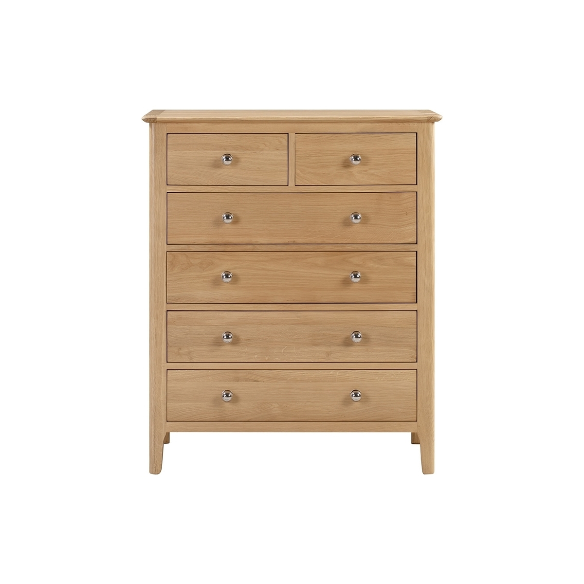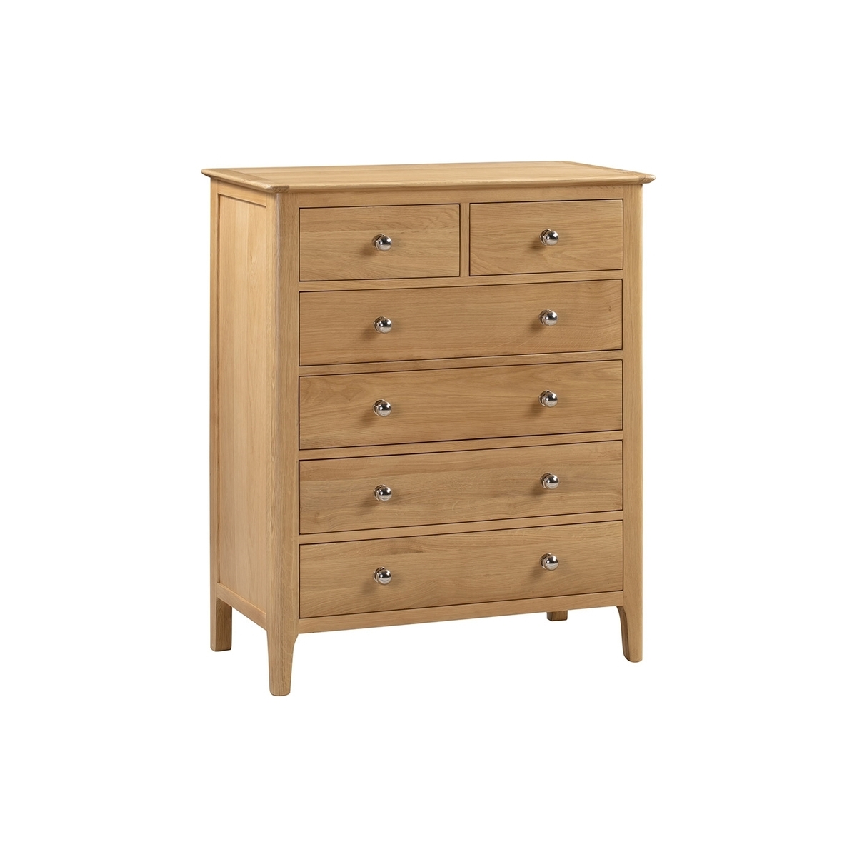 The Cotswold 4+2 Chest of Drawers from Julian Bowen combines functionality with classic beauty. With plenty of space for items small and large, this chest of drawers will be perfect for getting those outfits organised. Crafted from solid oak with silver knobs, this piece is not only practical but looks great too. Pair with other pieces from the Cotswold collection to give your room an update.