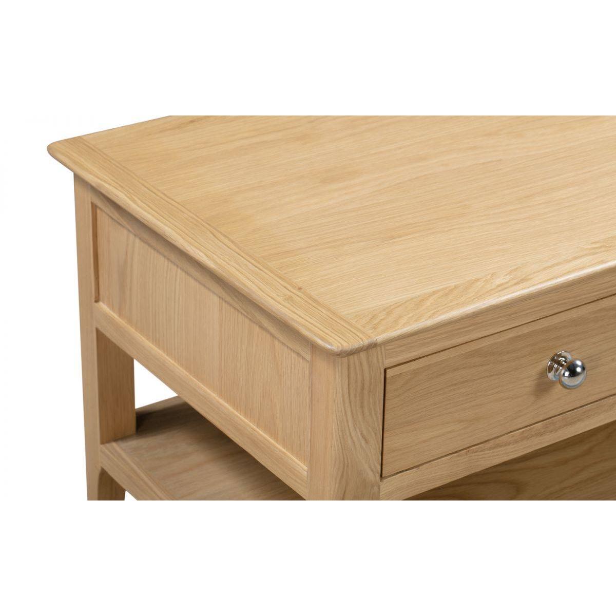 I’m a fan of the Cotswold coffee table for its solid oak look, neat shaker detailing and handy drawers - it feels both sturdy and unfussy. It sits comfortably in Scandi, country-cottage or more traditional living rooms, especially alongside neutral sofas, linen fabrics and natural-fibre rugs. For styling, keep the surface clutter-free by corralling remotes or coasters in the drawers, then layer a low tray with a small plant and a stack of coffee-table books. Use the lower shelf for a woven basket of throws or magazines to keep the space looking tidy yet lived-in.
