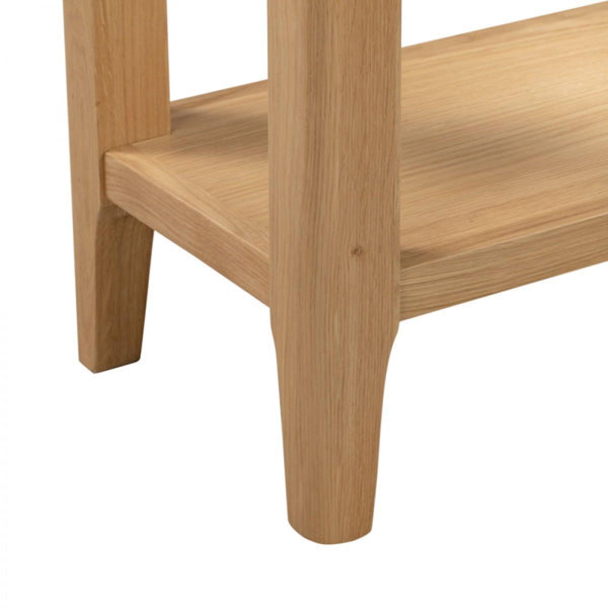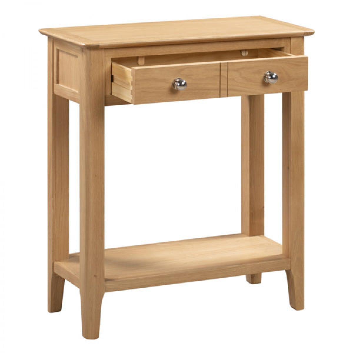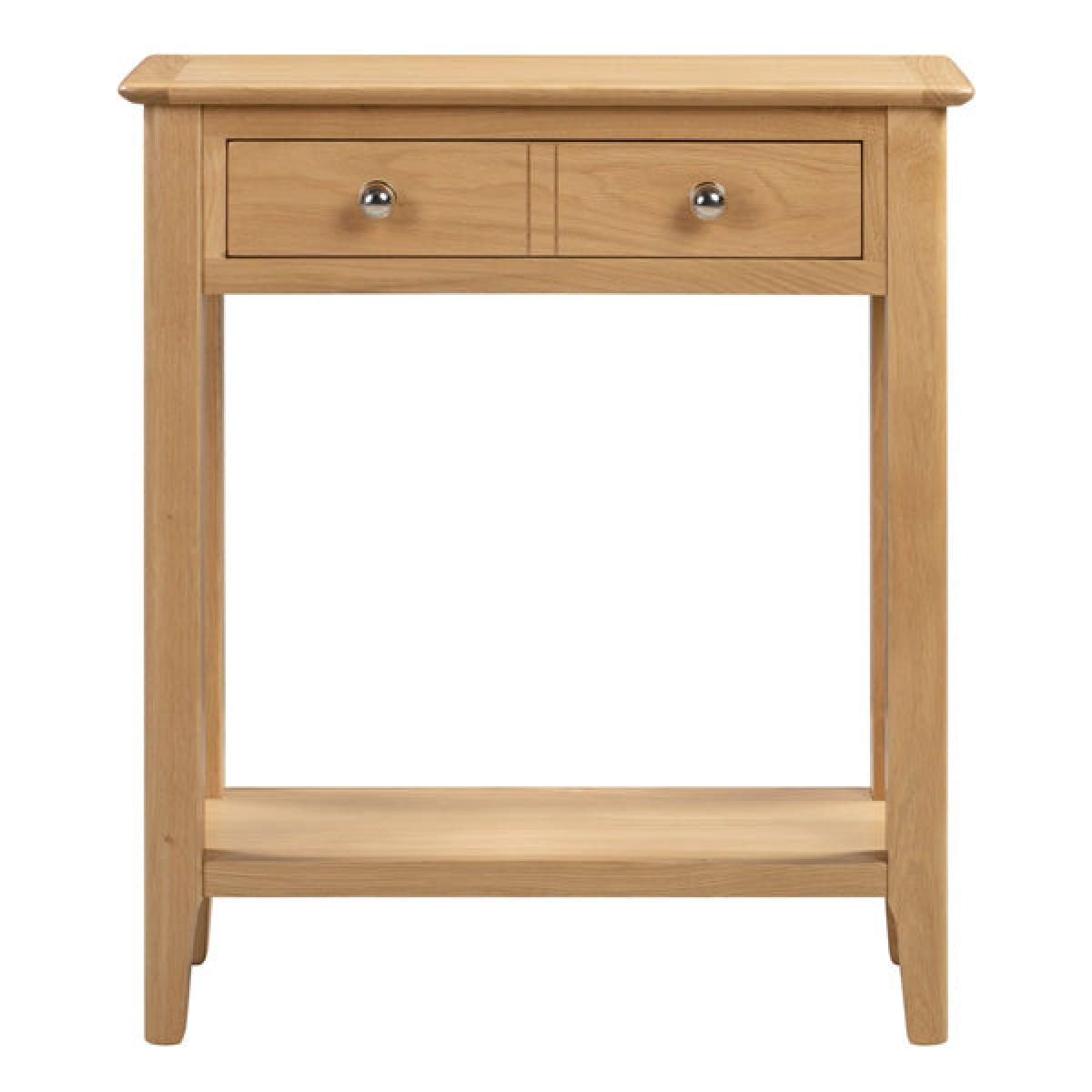 I really like this cotswold table for its classic, versatile design and light oak finish, which makes it seamlessly adaptable across a variety of interiors, from country cottages to contemporary spaces. Its compact size makes it perfect for hallways, entryways, or as a display surface behind a sofa. To style it effectively, consider adding a statement lamp, a vase of fresh flowers, or some carefully curated decorative items to create an inviting focal point. Practical tips include using the lower shelf for storing baskets or books to keep the top surface clutter-free, while the sleek drawer handles provide a subtle touch of charm. Overall, it's a functional piece with a timeless appeal, suited for those seeking understated elegance with a hint of rustic charm.