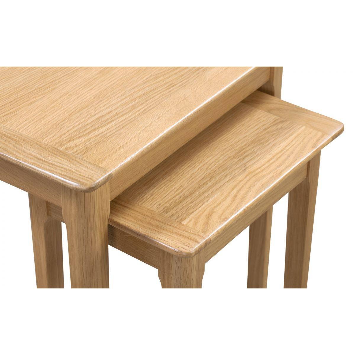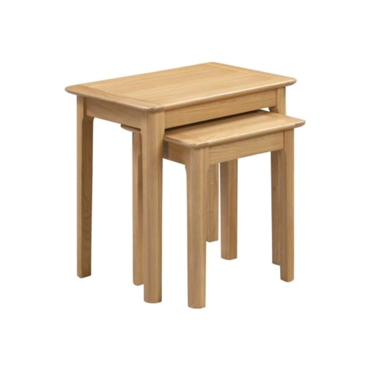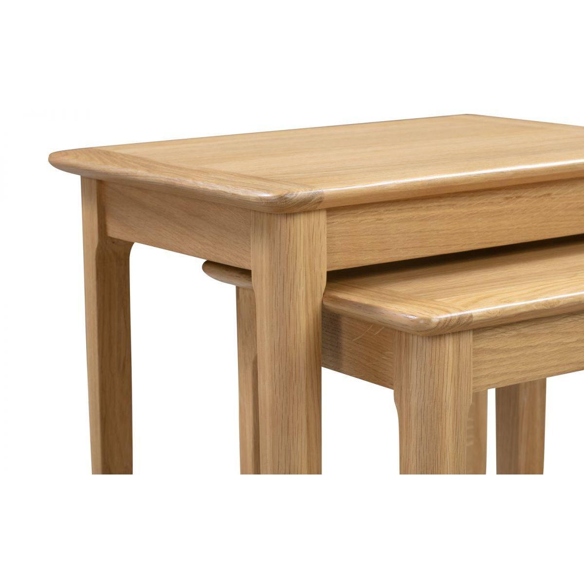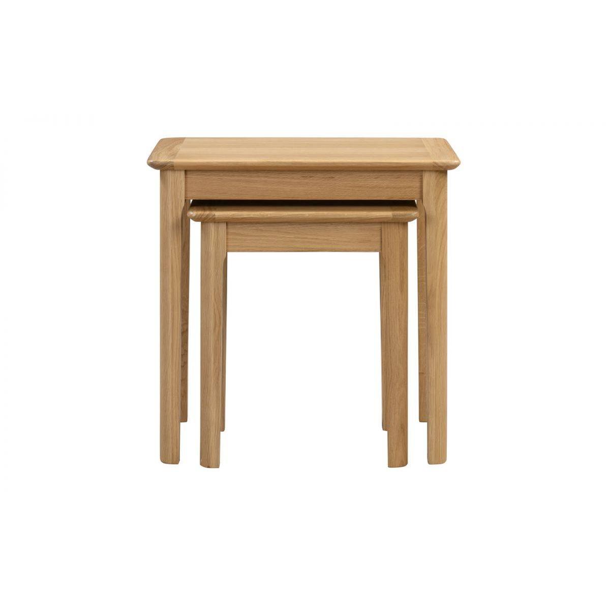 Crafted from solid oak and oak veneers, the Cotswold Nest of Tables features two tables that slip under one another, perfect for when you need extra surface space. This simple, yet stylish design is an ideal additional to any traditional living room with its soft edges and natural finish. Part of the Julian Bowen Cotswold Dining & Occasional Collection. Dimensions: 34cm (D) x 49cm (W) x 49cm (H)