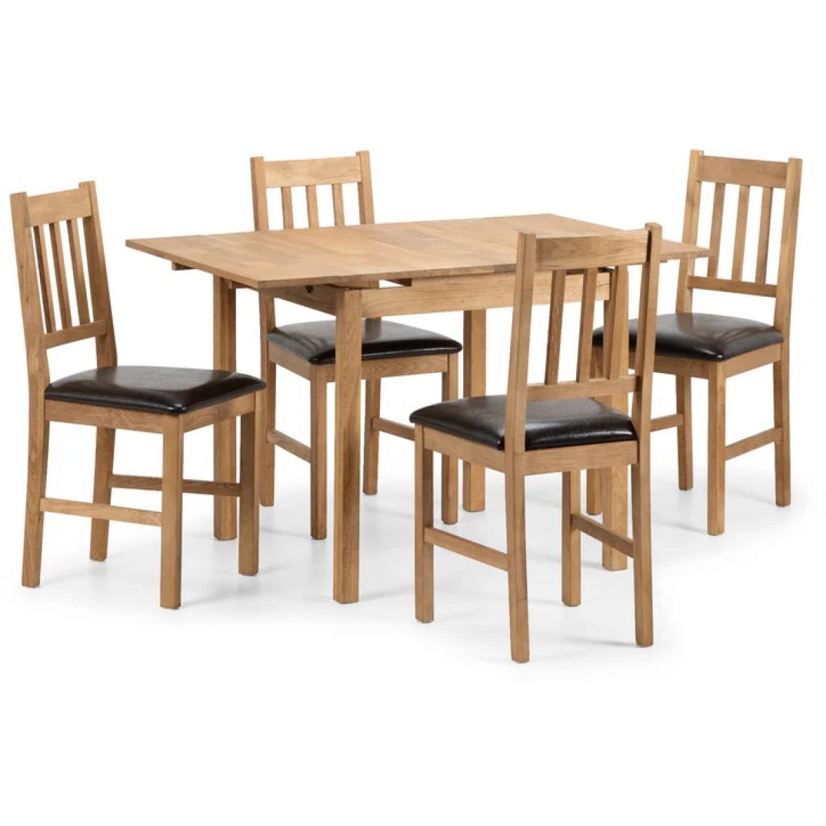 Crafted with care from the finest solid white oak, the Julian Bowen Coxmoor Extending Dining Table brings a natural, traditional charm to any dining space. Its rich, oiled finish not only highlights the beautiful grain of the wood but also adds a layer of durability – built to withstand the bustle of daily life. Designed with both form and function in mind, this compact table features a clever retractable leaf extension, perfect for those moments when extra guests pop by. Effortless to operate and neatly tucked away when not in use, it’s an ideal choice for cosy kitchens and smaller dining areas where space is at a premium. Timeless in style and built to last, the Coxmoor sits comfortably in both classic and contemporary settings. And with a full range of matching pieces available in the Julian Bowen Coxmoor collection, creating a harmonious look throughout your home couldn’t be easier. Solid oak construction with a durable oiled finish Space-saving extension mechanism stored within the table Perfect for smaller dining rooms or kitchen diners Part of the wider Coxmoor range for a coordinated feel Includes a 12-month product guarantee for peace of mind Dimensions: Height 75cm Width 120cm Depth 80cm Please note All screens vary in colour reproduction and whilst every effort has been made to display the colour as accurately as possible it is for guidance only.