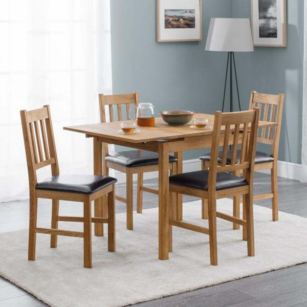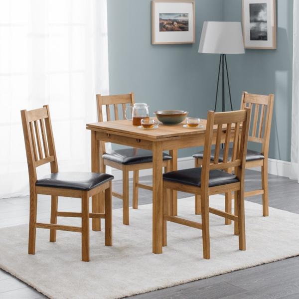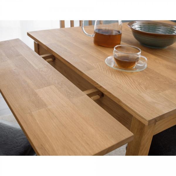 The Coxmoor extending dining table has been beautifully crafted from the finest, solid white oak, for a natural and traditional look to your dining room. The dining table has a rich oiled finish for added durability and to enhance the woods real natural grain. Featuring a retractable leaf extension system that is easy to use and stores within the table when not in use.