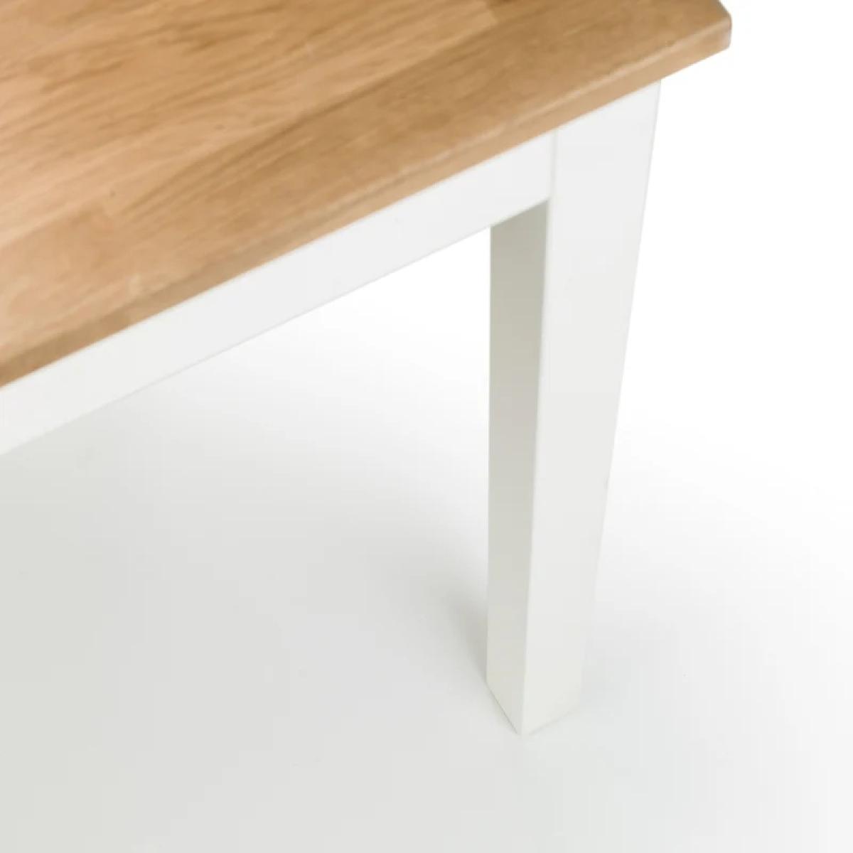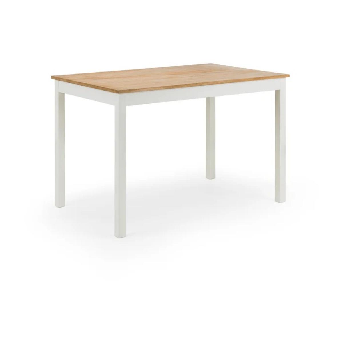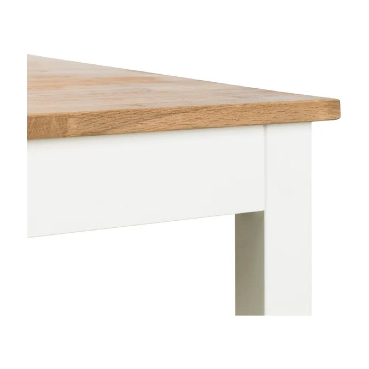 Beautifully crafted from solid white oak with a warm oiled finish, the Julian Bowen Coxmoor Dining Table in an elegant ivory and oak combination brings a classic, homely feel to any kitchen or dining room. The natural grain of the wood is richly enhanced for a look that’s both traditional and full of character – a real conversation starter for when friends and family gather round. Built to Last, Made to Impress With its sturdy rectangular frame and clean-lined design, this table strikes the perfect balance between rustic charm and everyday practicality. Whether you’re enjoying a relaxed breakfast or hosting Sunday lunch, it offers a dependable and stylish setting for every meal. Simple to Care For Thanks to its smooth, oiled finish, the Coxmoor is a breeze to keep clean – a quick wipe-down is all it takes to keep it looking its best. The durable surface stands up well to the rigours of daily life, making it a truly family-friendly choice. Versatile Style for Any Setting Its neutral ivory base paired with natural oak tones means it fits seamlessly with a wide range of décor styles – from countryside cottages to contemporary townhouses. Features: Crafted from solid white oak with an oiled finish to showcase the grain Ivory-painted base adds a light, airy touch to any room Smooth, easy-clean surface resists everyday wear Comfortably seats 4–6, ideal for family meals or casual entertaining Minimal assembly required – easy to put together and enjoy Dimensions: 150cm (L) x 90cm (W) x 75cm (H) Please note All screens vary in colour reproduction and whilst every effort has been made to display the colour as accurately as possible it is for guidance only.